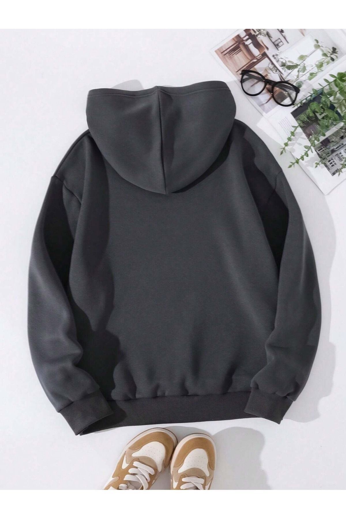 Düz Basic Kalın Kışlık Sweatshirt - Füme Oversize Kapüşonlu