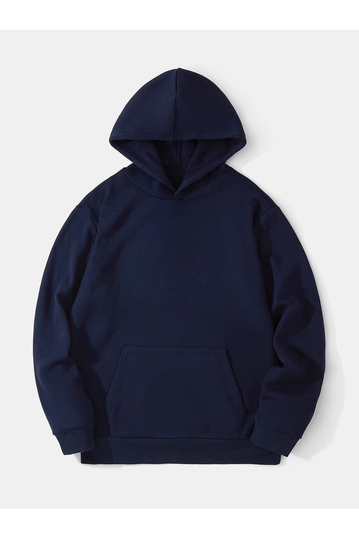 Düz Basic Kalın Kışlık Sweatshirt - Lacivert Oversize Kapüşonlu