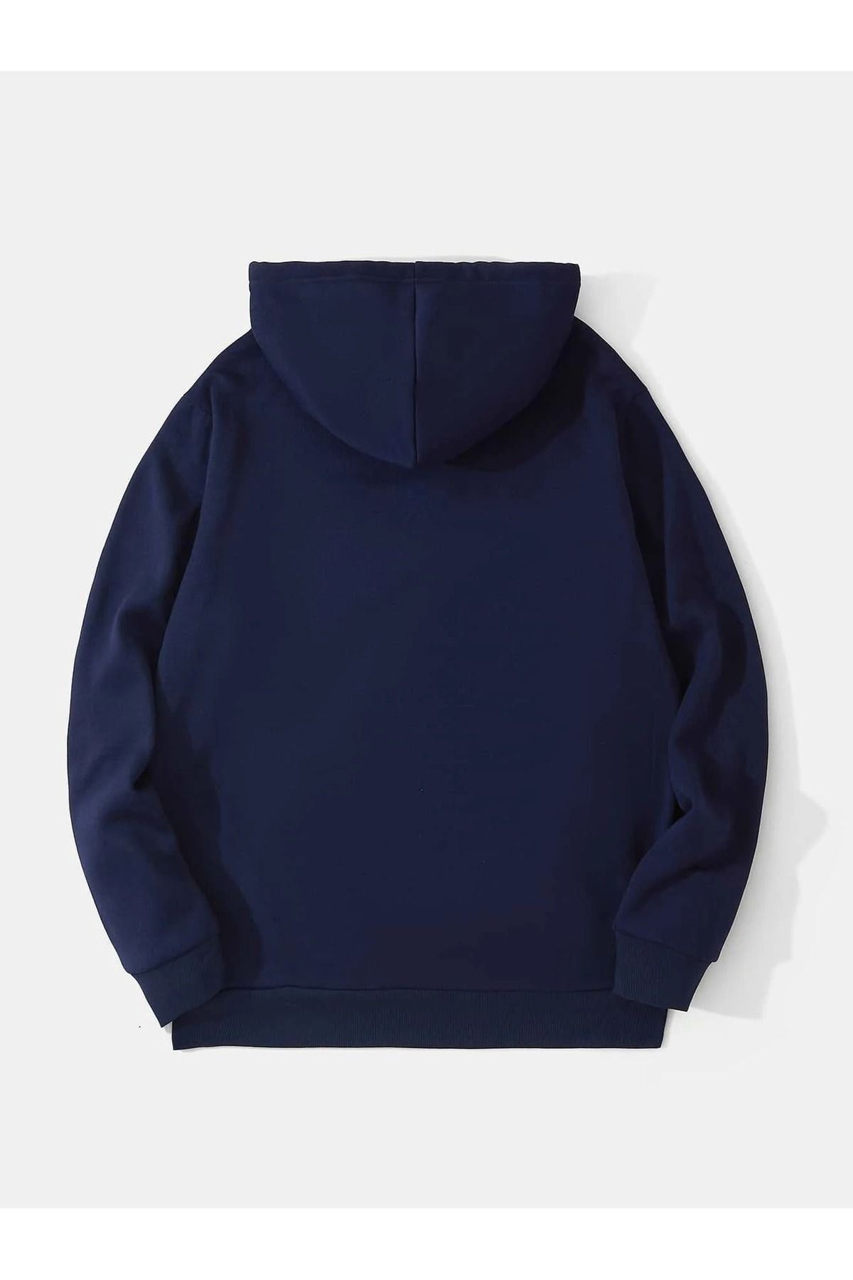 Düz Basic Kalın Kışlık Sweatshirt - Lacivert Oversize Kapüşonlu
