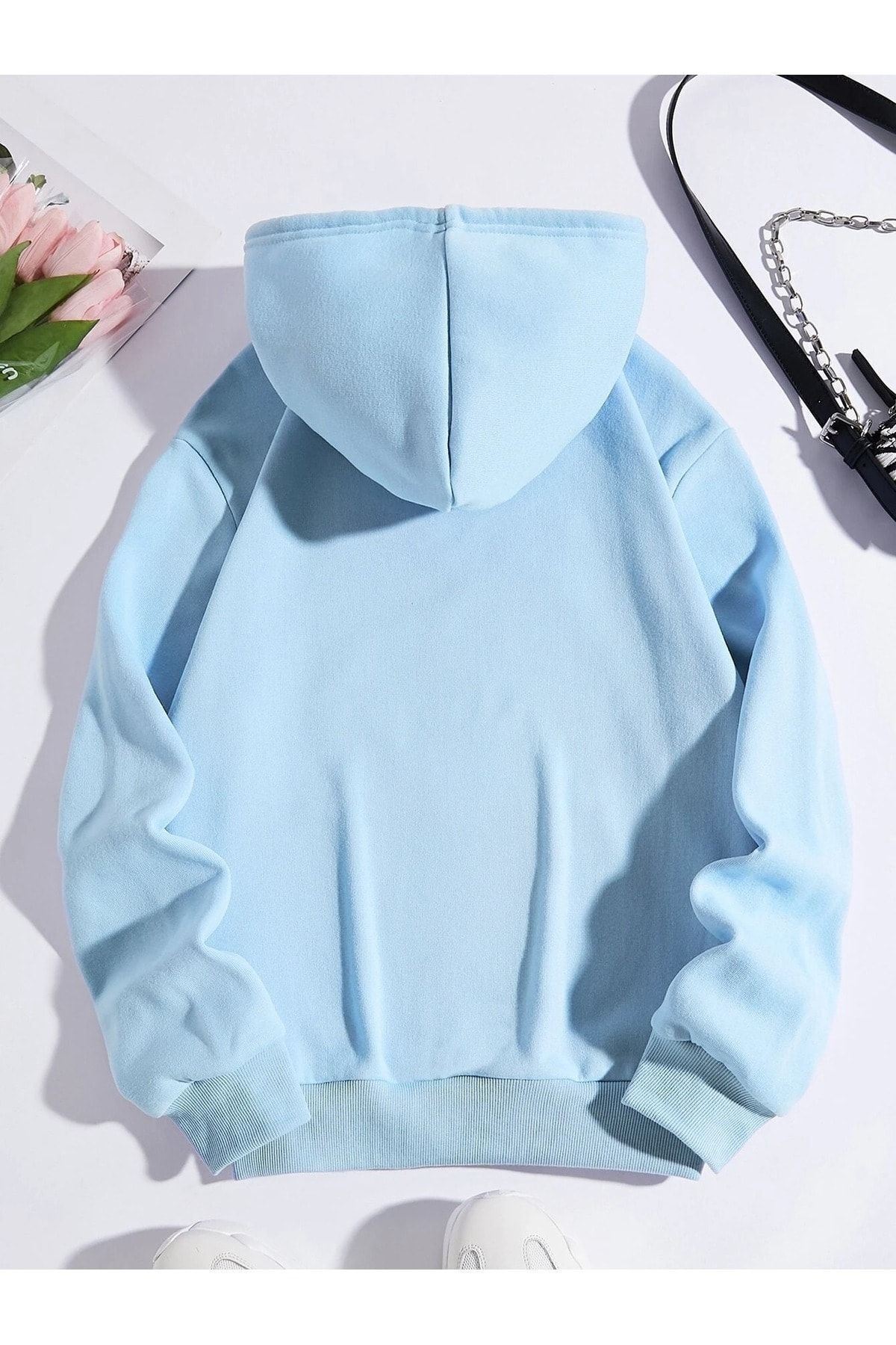 Düz Basic Sweatshirt - Bebe Mavisi Oversize Kapüşonlu