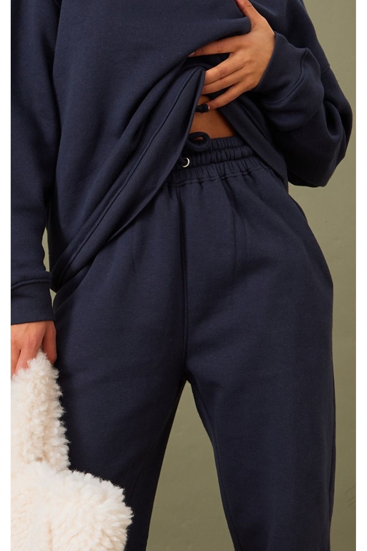 Düz Basic Sweatshirt - Lacivert Uzun Kol Oversize Bisiklet Yaka