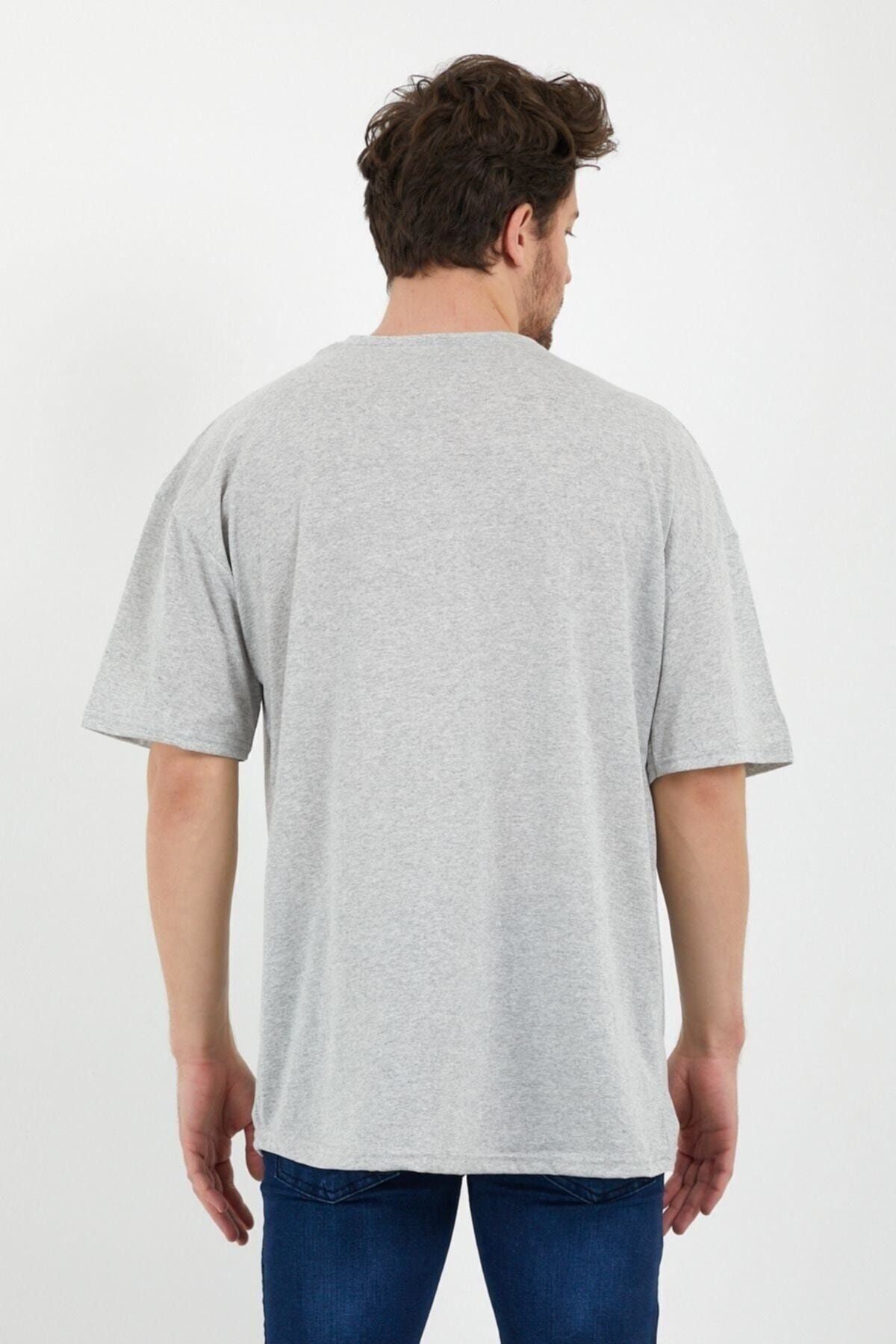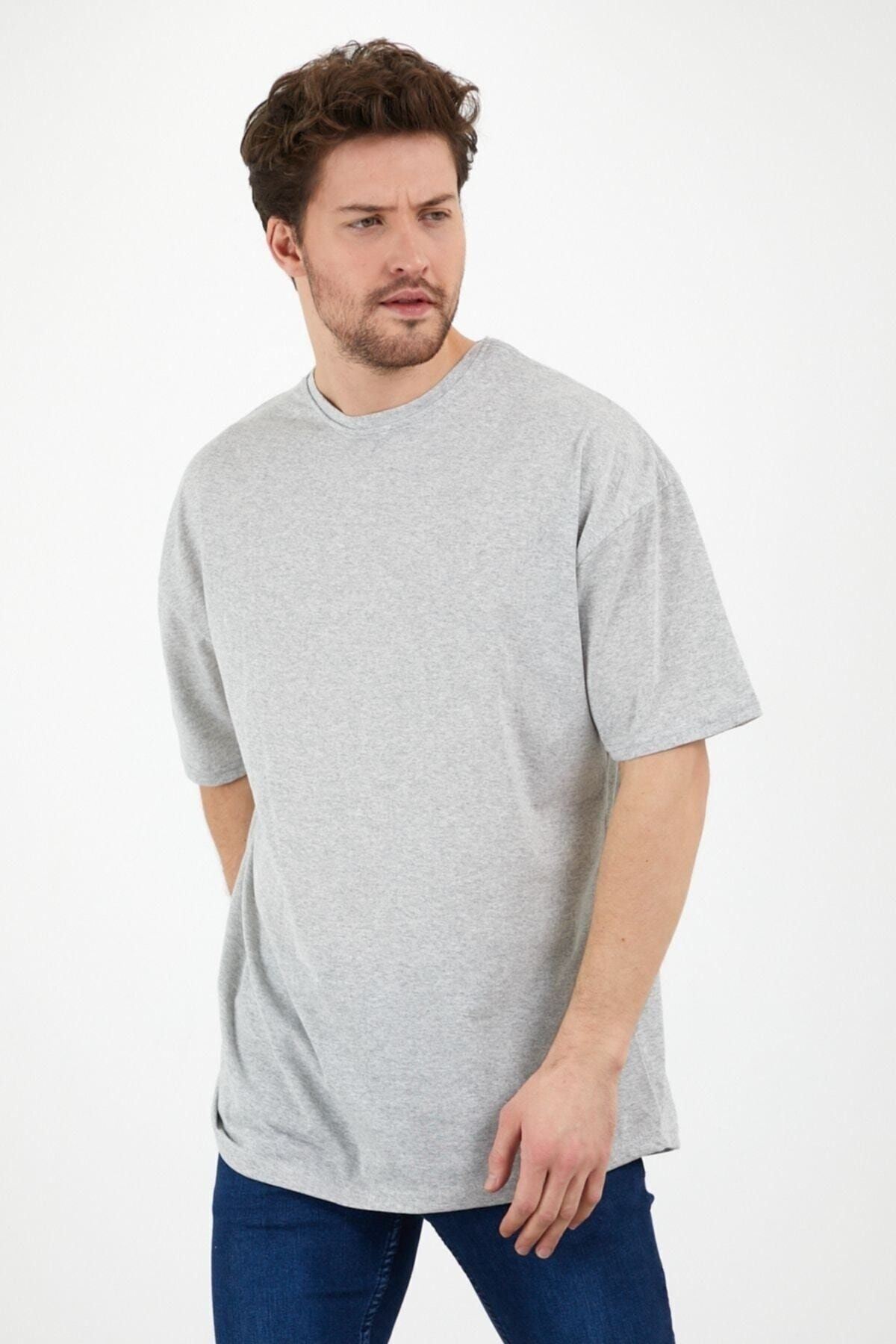 Düz Basic T-shirt - Gri Oversize Bisiklet Yaka Kısa Kol Tişört