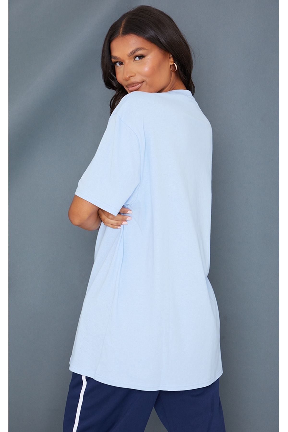 Düz Süprem T-Shirt - Bebe Mavisi Oversize Bisiklet Yaka Kısa Kol Tişört