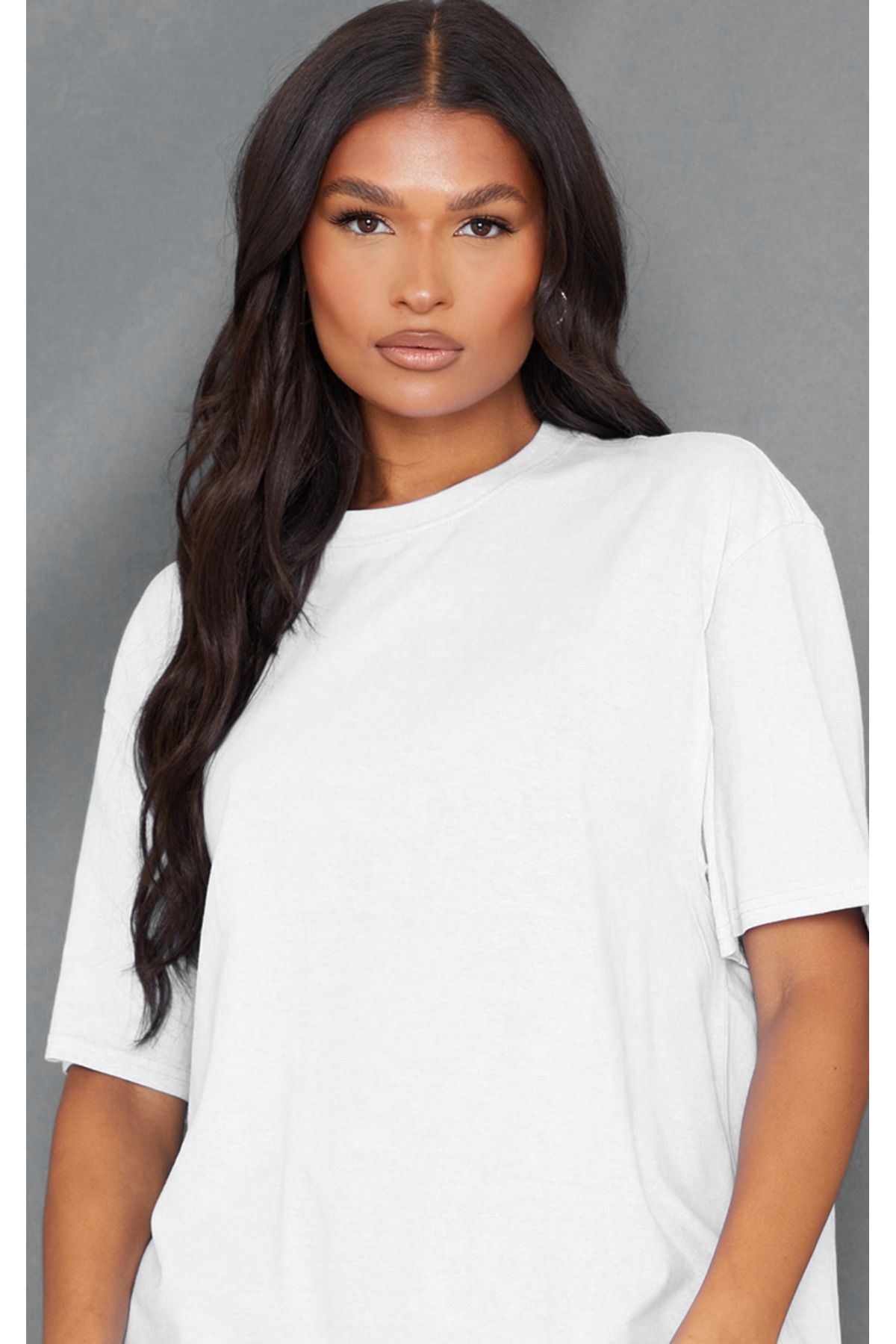 Düz Süprem T-Shirt - Beyaz Oversize Bisiklet Yaka Kısa Kol Tişört