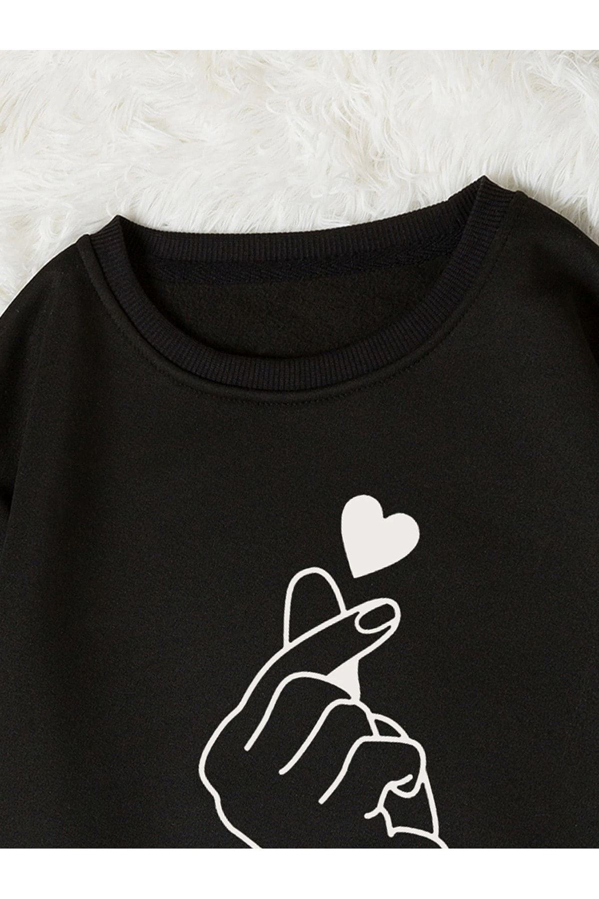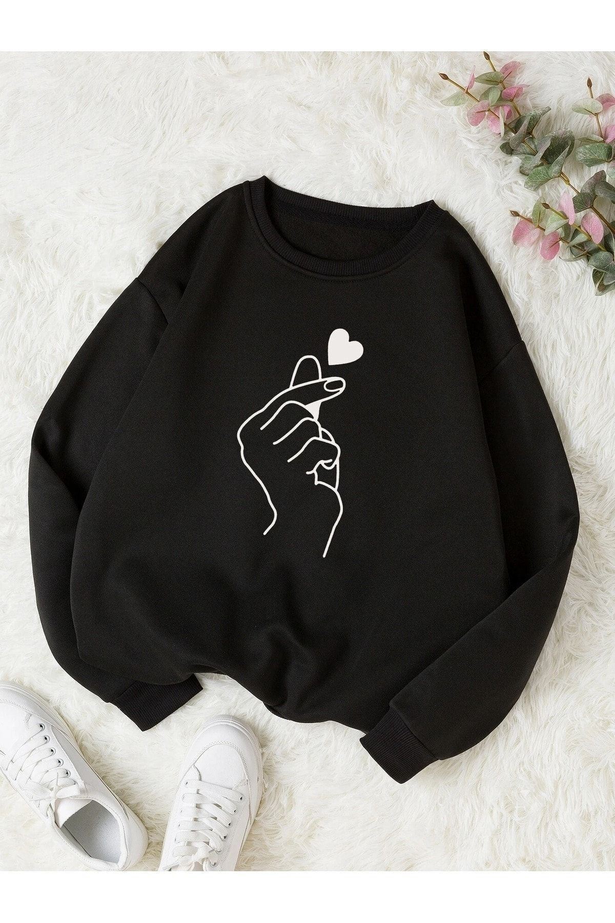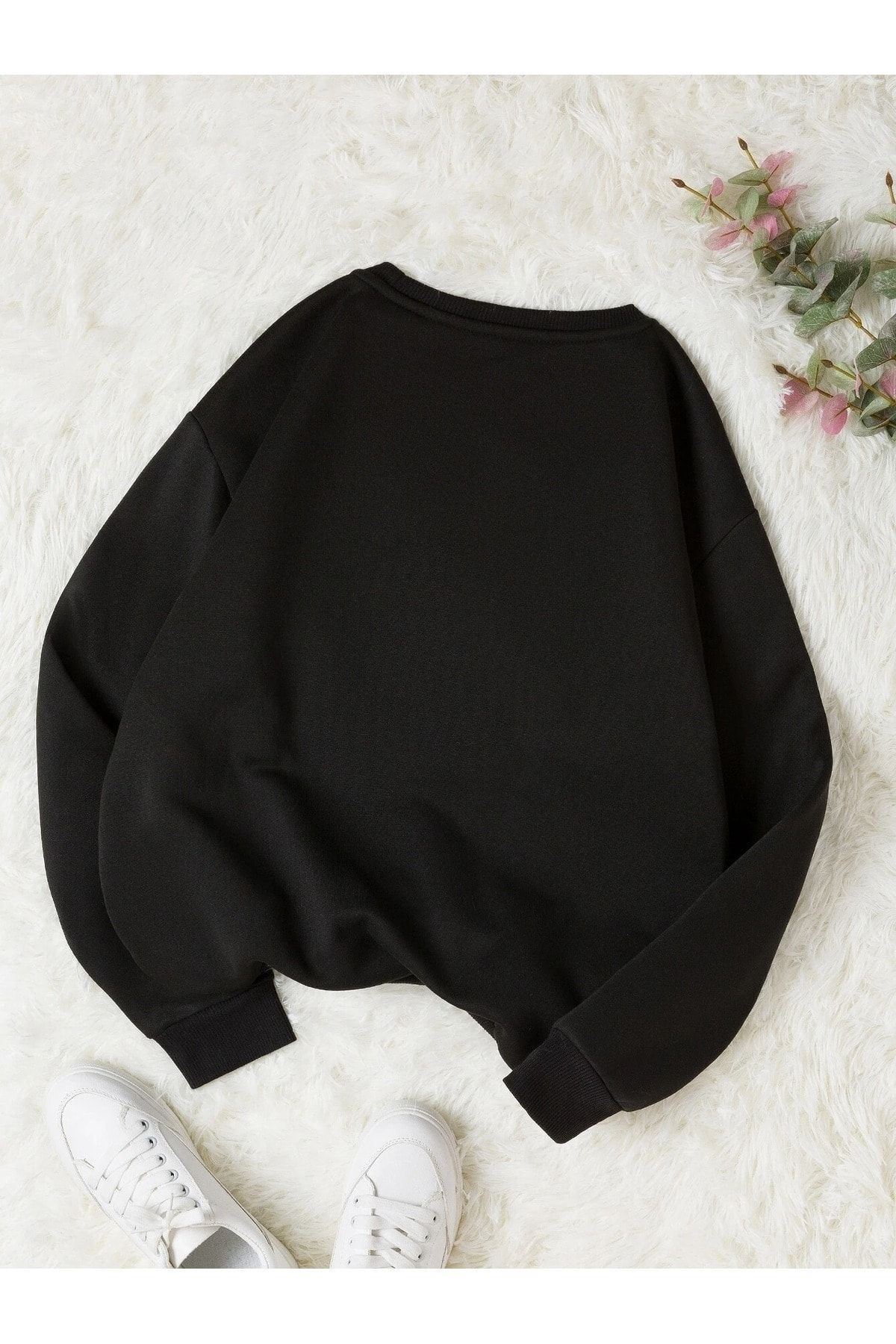 El Kalp Sweatshirt - Siyah Baskılı Oversize Bisiklet Yaka