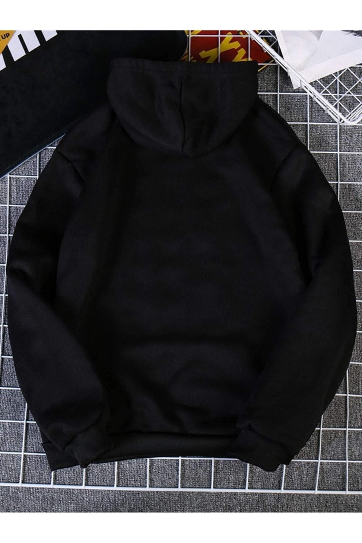 El Kalp Sweatshirt - Siyah Baskılı Oversize Kapüşonlu