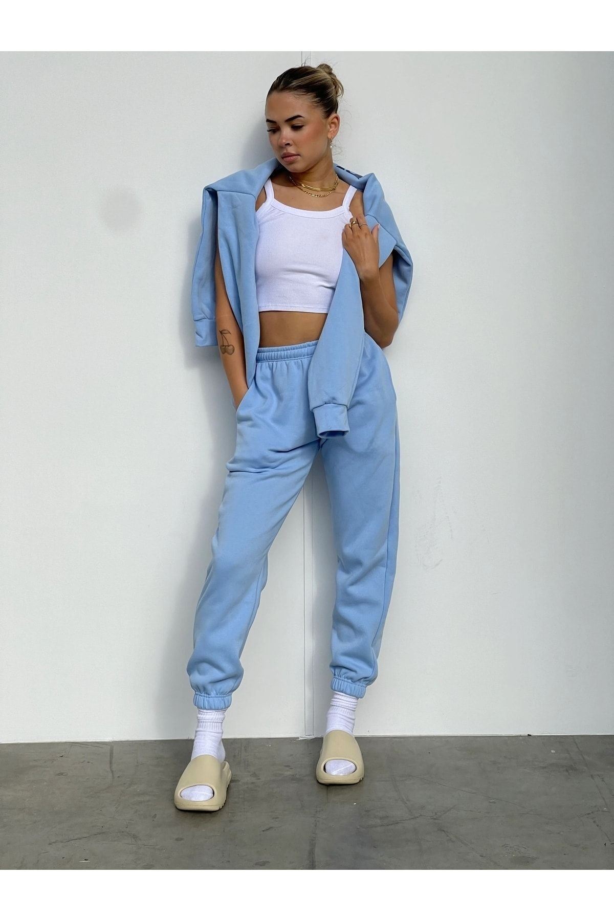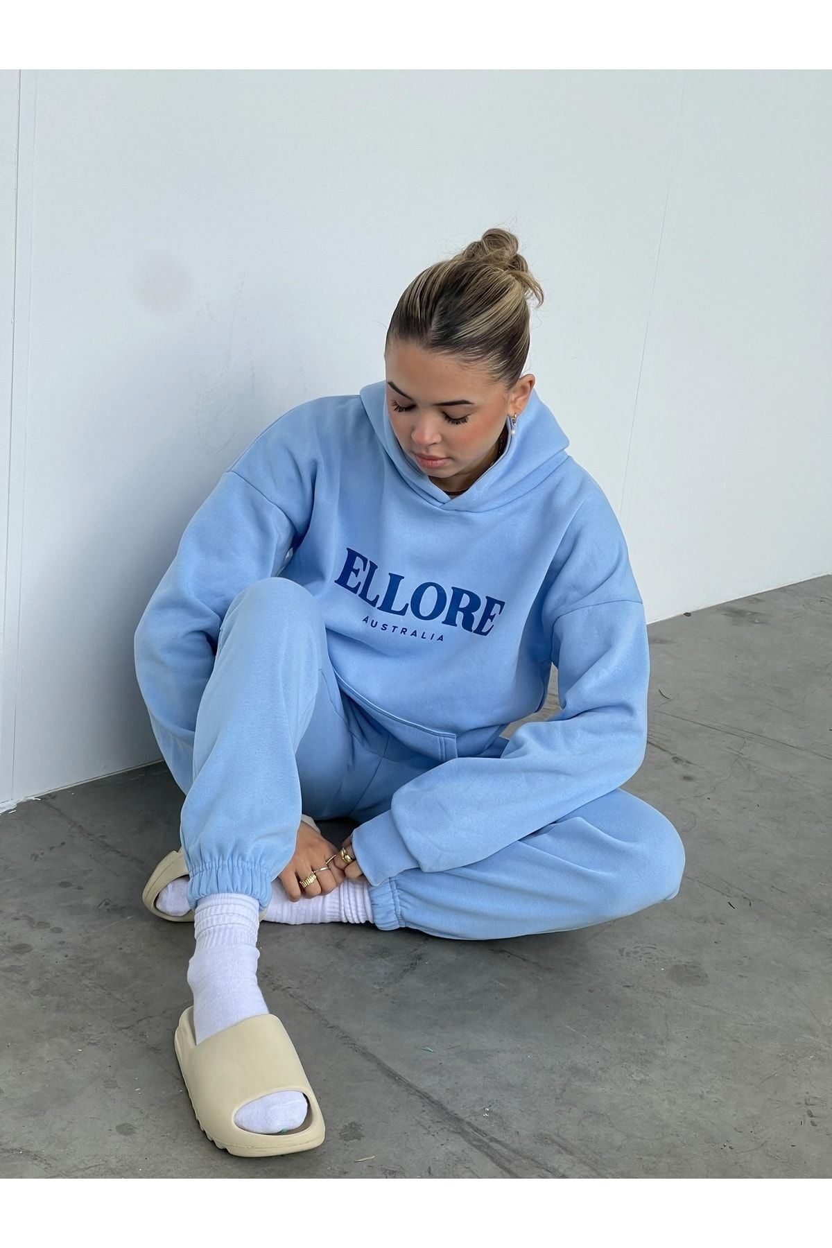 Ellore Australia Eşofman Takımı Sweatshirt Jogger - Bebe Mavisi Baskılı Oversize Şardonlu Kapüşonlu