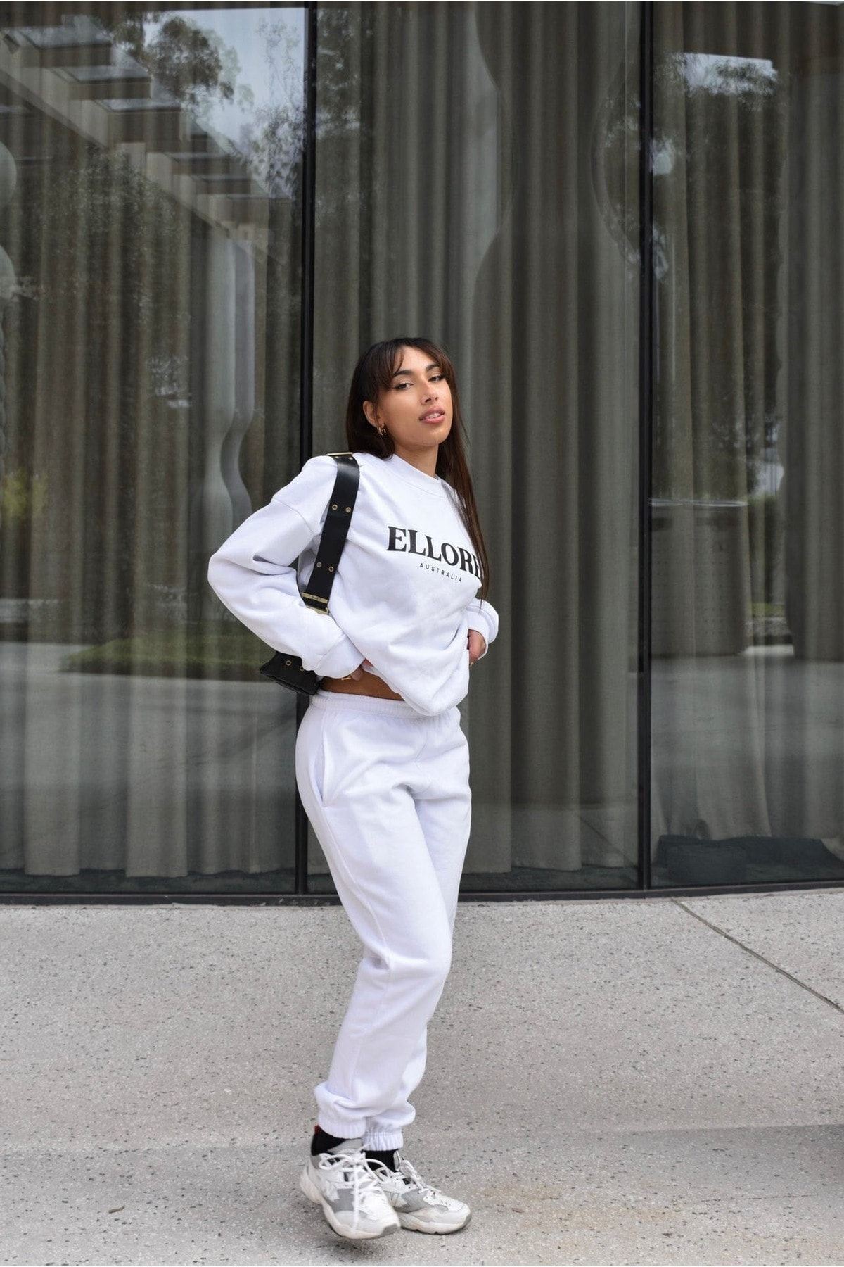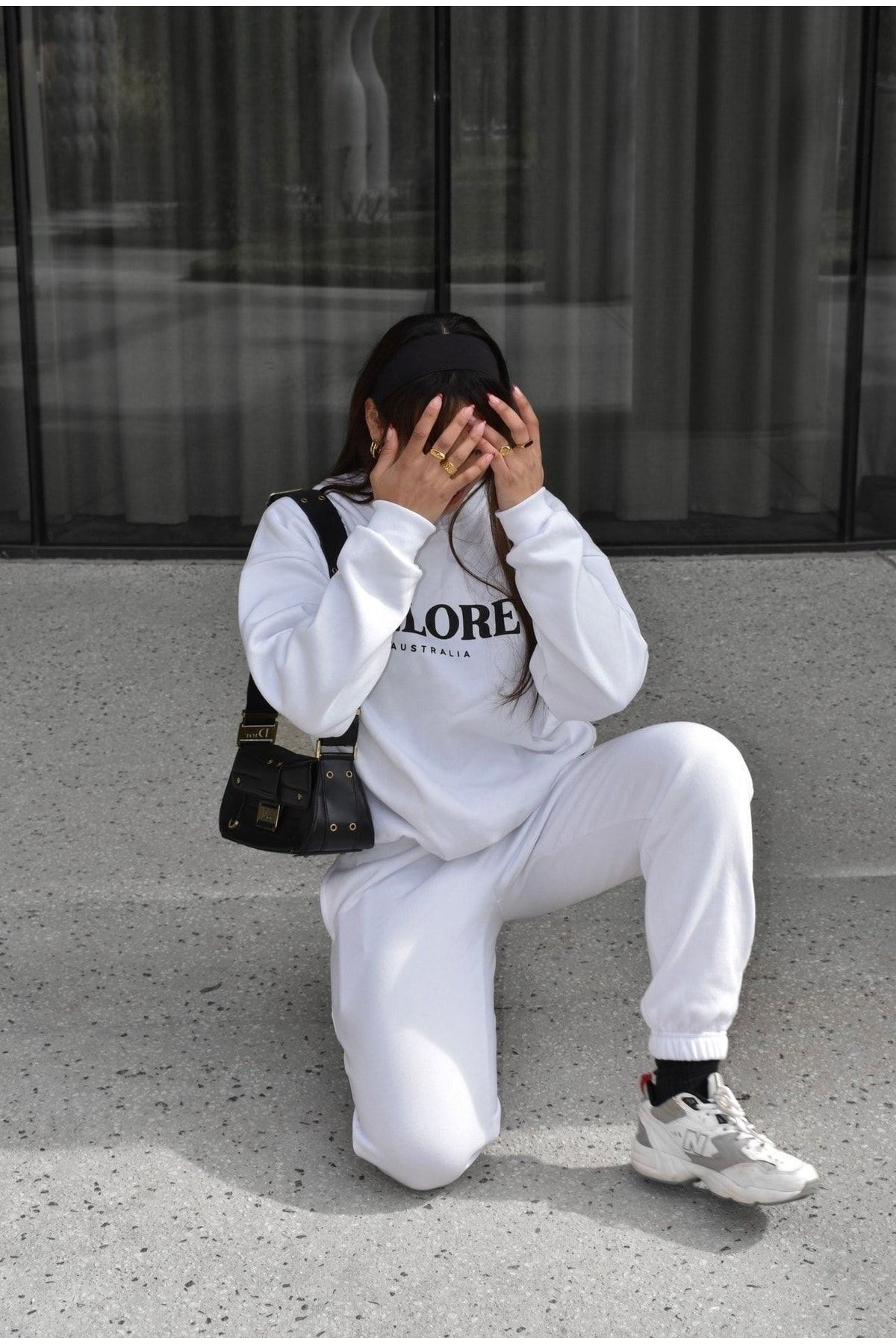 Ellore Australia Eşofman Takımı Sweatshirt Jogger - Beyaz Baskılı Oversize Şardonlu Bisiklet Yaka