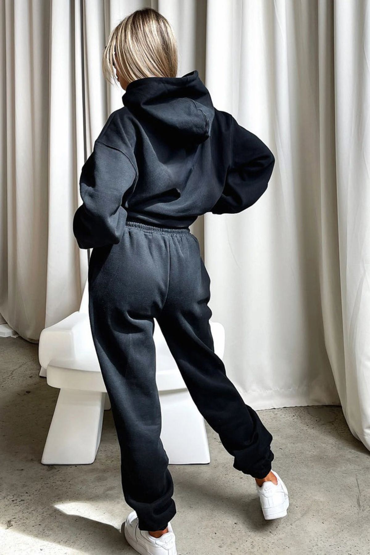 Ellore Australia Eşofman Takımı Sweatshirt Jogger - Siyah Baskılı Oversize Şardonlu Kapüşonlu