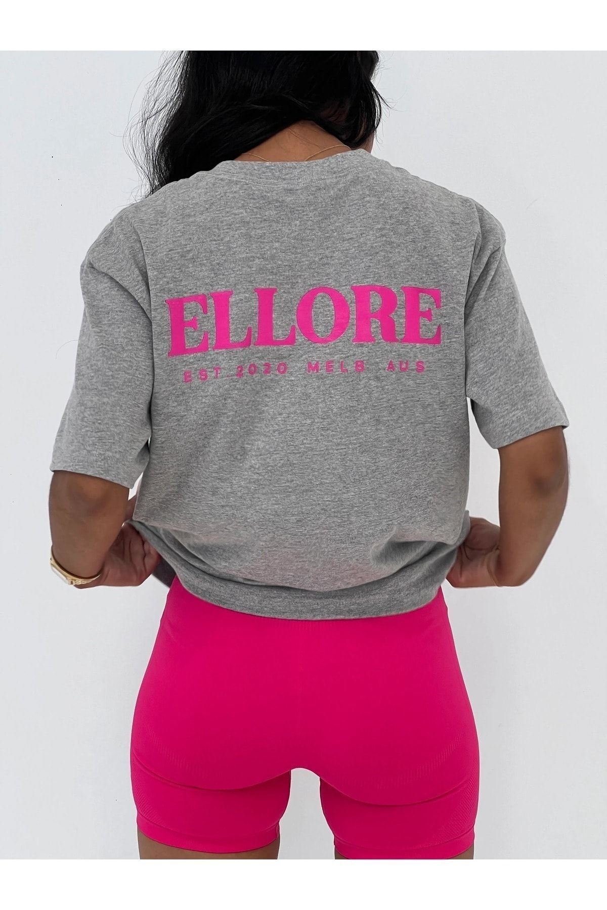 Ellore T-Shirt - Gri Baskılı Oversize Bisiklet Yaka Kısa Kol Tişört