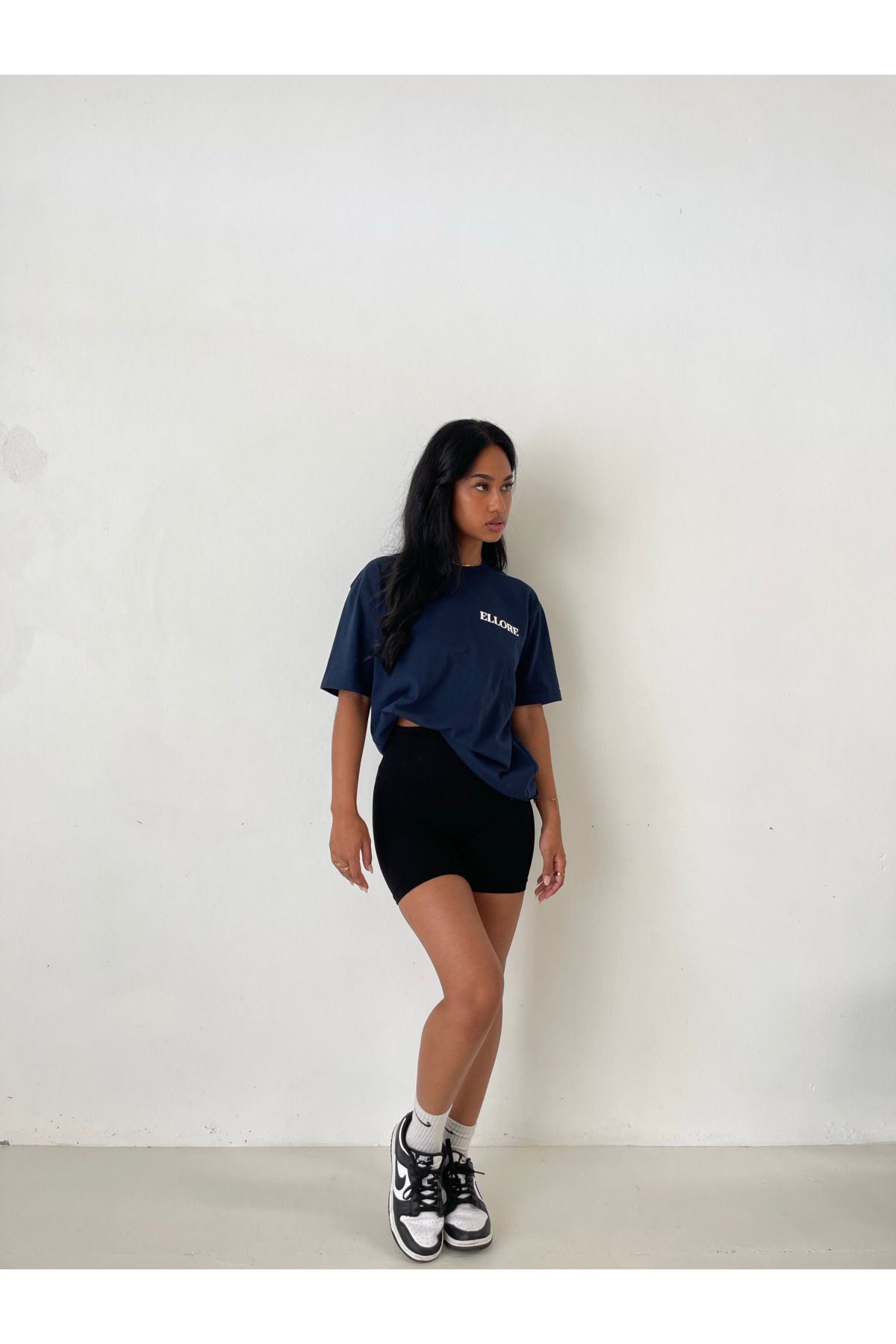 Ellore Yazılı Süprem T-Shirt - Lacivert Baskılı Oversize Bisiklet Yaka Kısa Kol Tişört