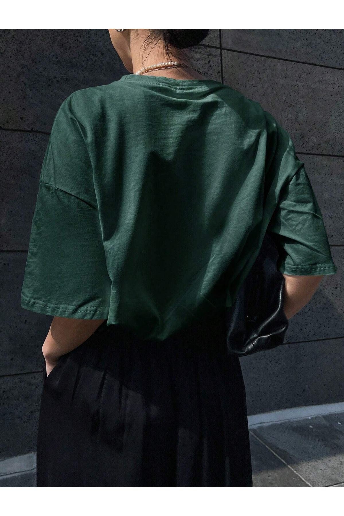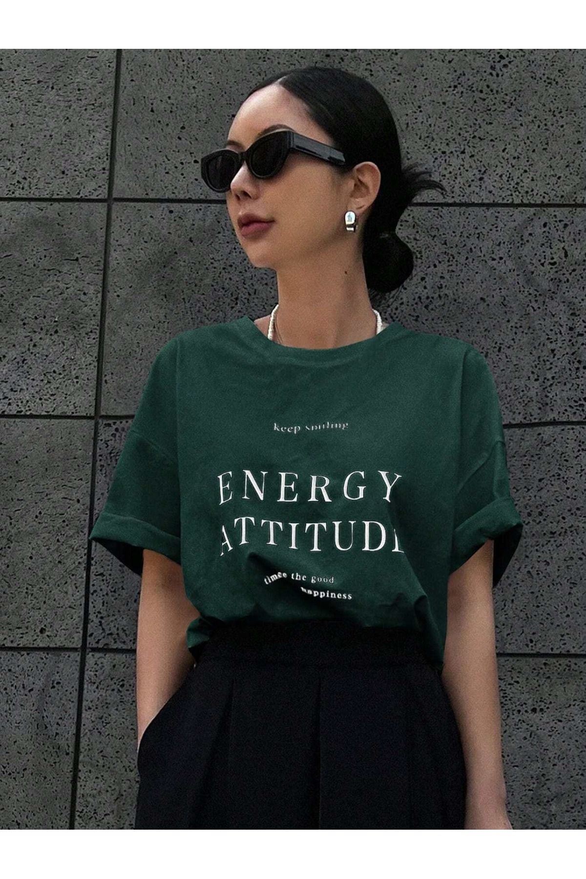 Energy Attitudy Süprem T-Shirt - Nefti Yeşil Baskılı Oversize Bisiklet Yaka Kısa Kol Tişört