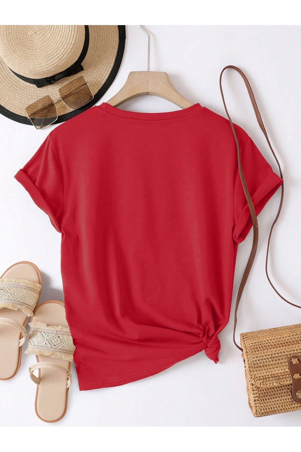 Eriyen Kalpler Baskılı Süprem Kırmızı T-Shirt - Oversize Bisiklet Yaka Tişört