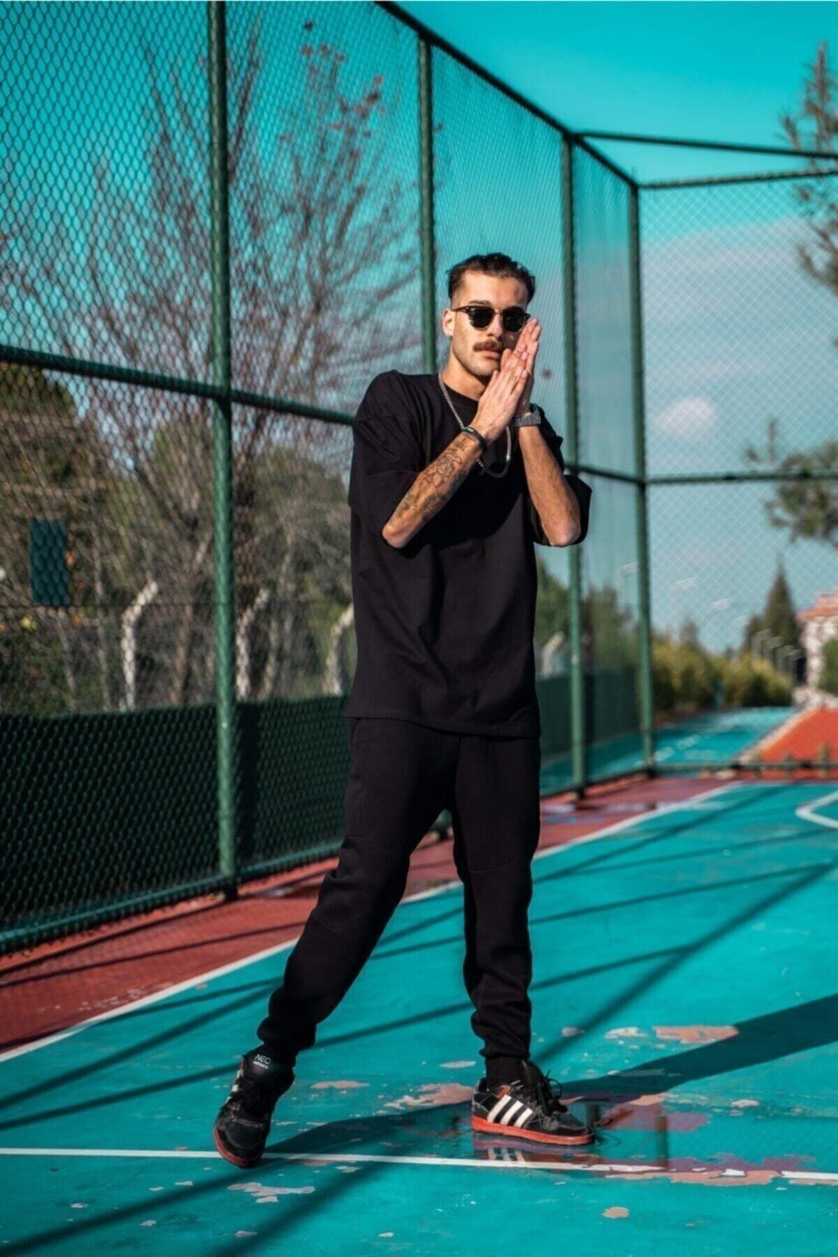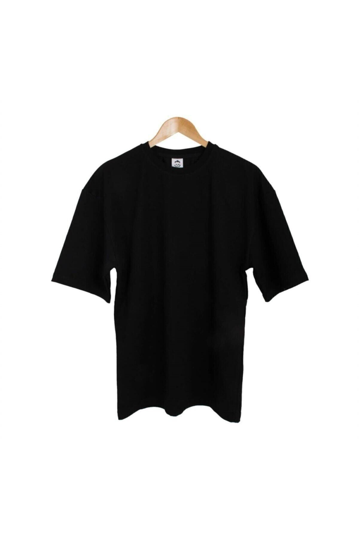 Erkek Düz Basic T-shirt - Siyah Oversize Bisiklet Yaka Kısa Kol Tişört