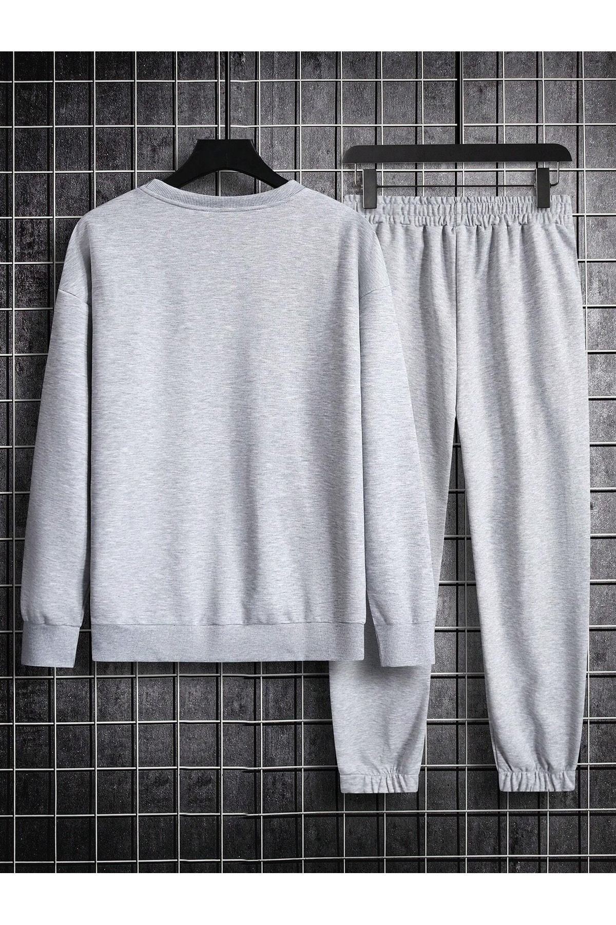 Erkek Düz Eşofman Takımı Sweatshirt Jogger - Gri Oversize Şardonlu Bisiklet Yaka