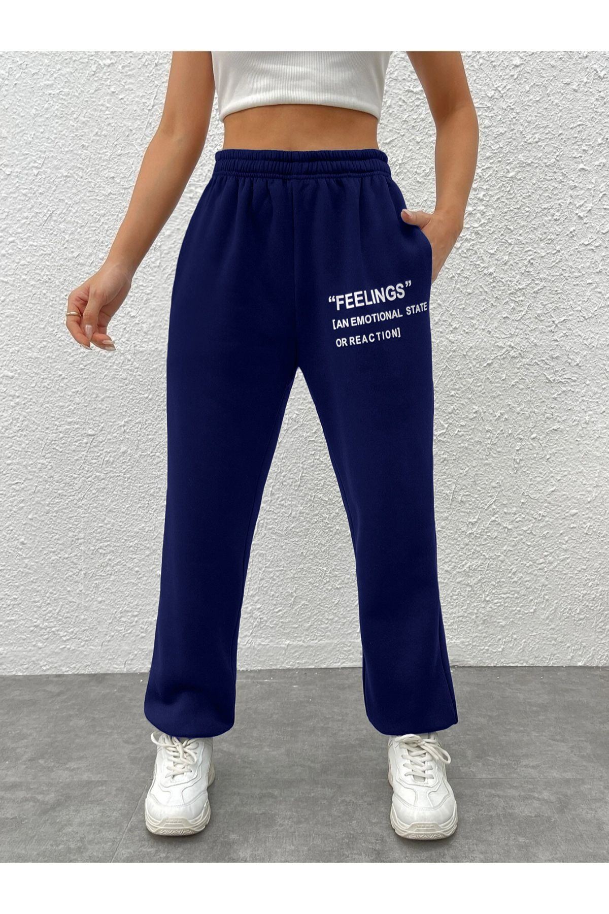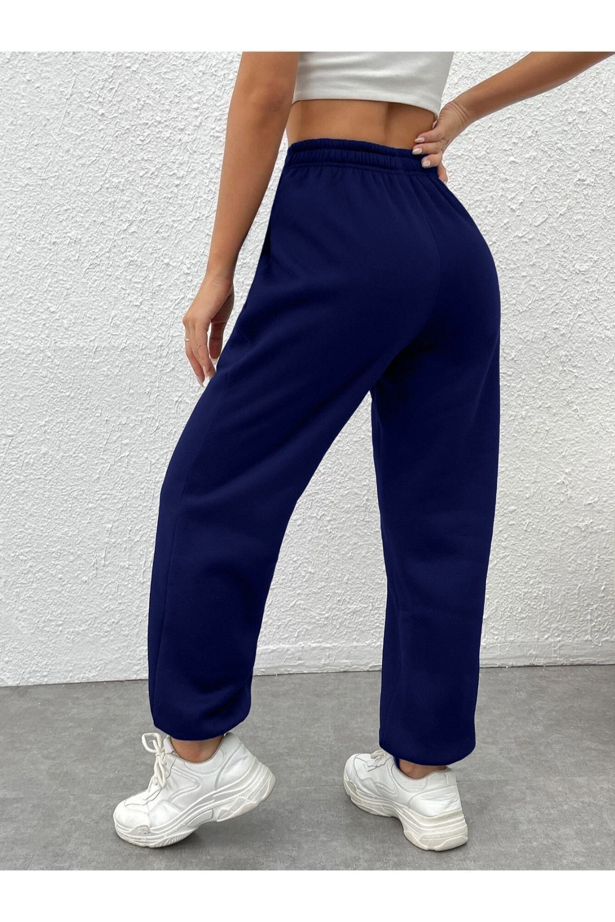 Eşofman Altı Jogger - Lacivert Baskılı Lastik Paça Yüksek Bel