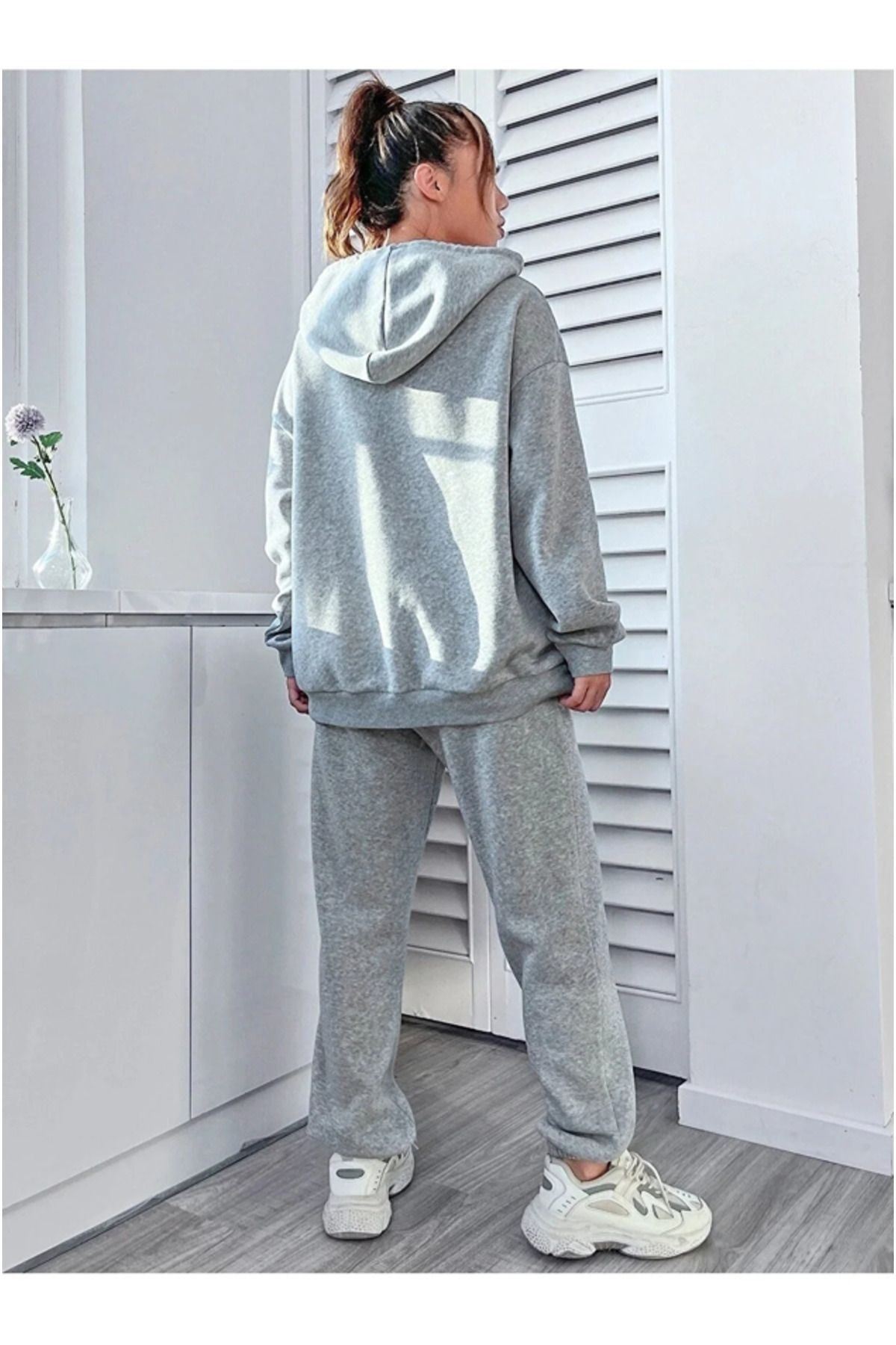 Sweetline'dan, soğuk kış günlerinde sizi sıcacık tutacak, tarzınızı yansıtacak oversize baskılı şardonlu eşofman takımı! ; eşofman altı, jogger kesim lastik paçalıdır. Sweatshirt, kapüşonludur ve bisiklet yakalıdır. Sweatshirt de baskı bulunur. Eşofman takımı, oversize kalıptır. ; bu eşofman takımı, kış aylarında hem spor yaparken hem de günlük giyimde kullanabileceğiniz, çok yönlü bir parçadır. ; şardonlu kumaşı sayesinde sizi sıcacık tutar. Oversize kalıbı sayesinde rahat ve konforludur. ;