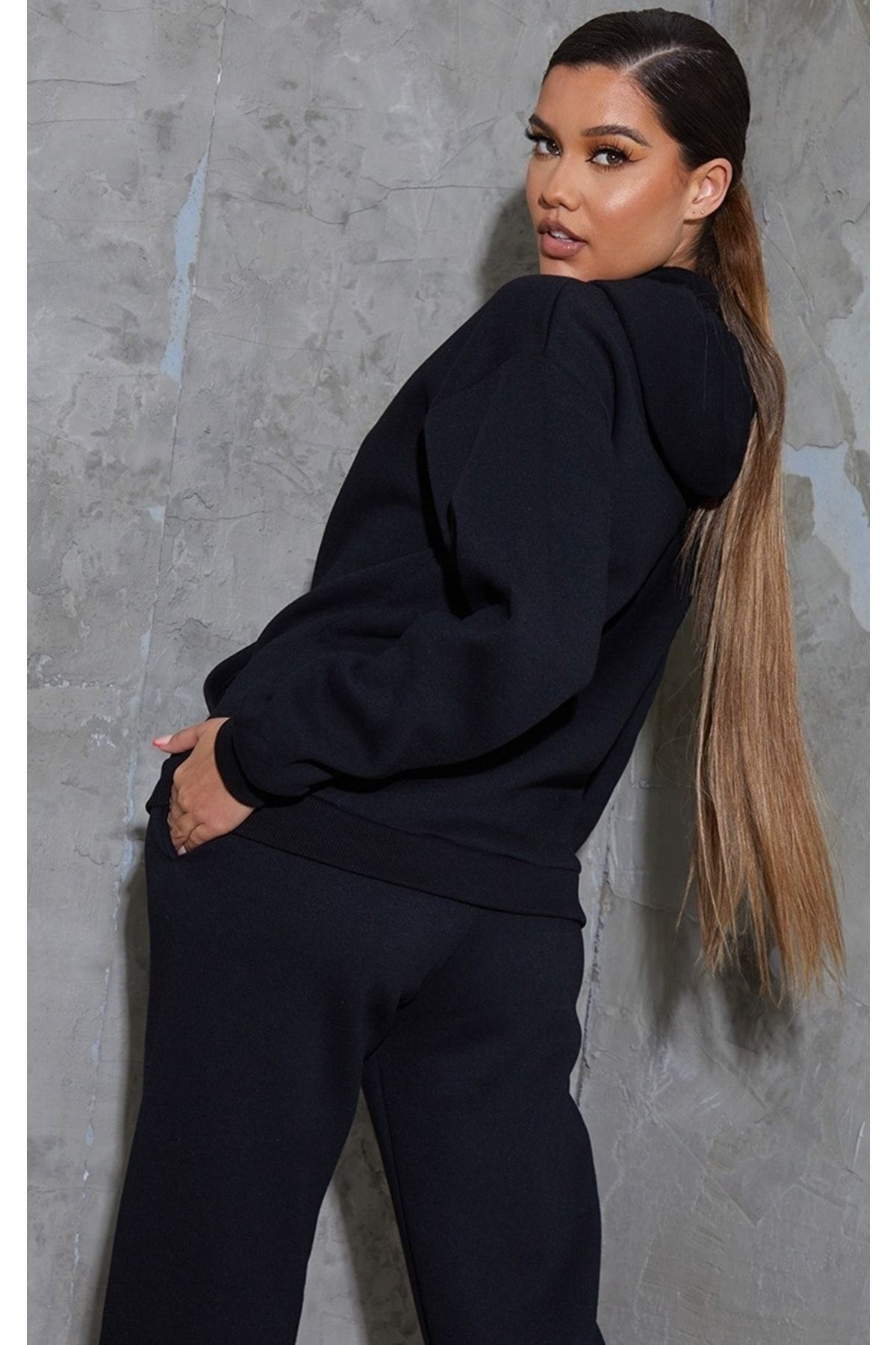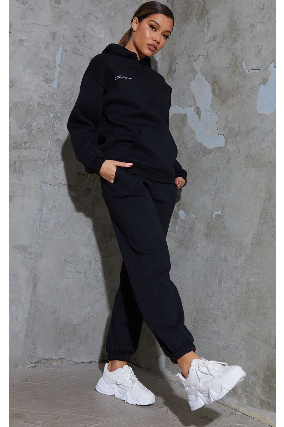 Established Eşofman Takımı Sweatshirt Jogger - Siyah Baskılı Oversize Şardonlu Kapüşonlu Lastik Paç