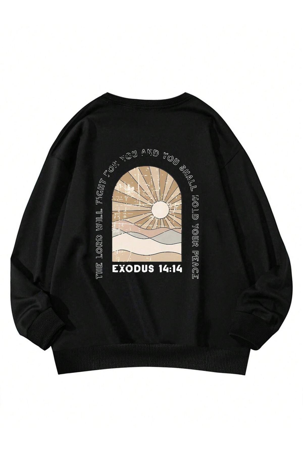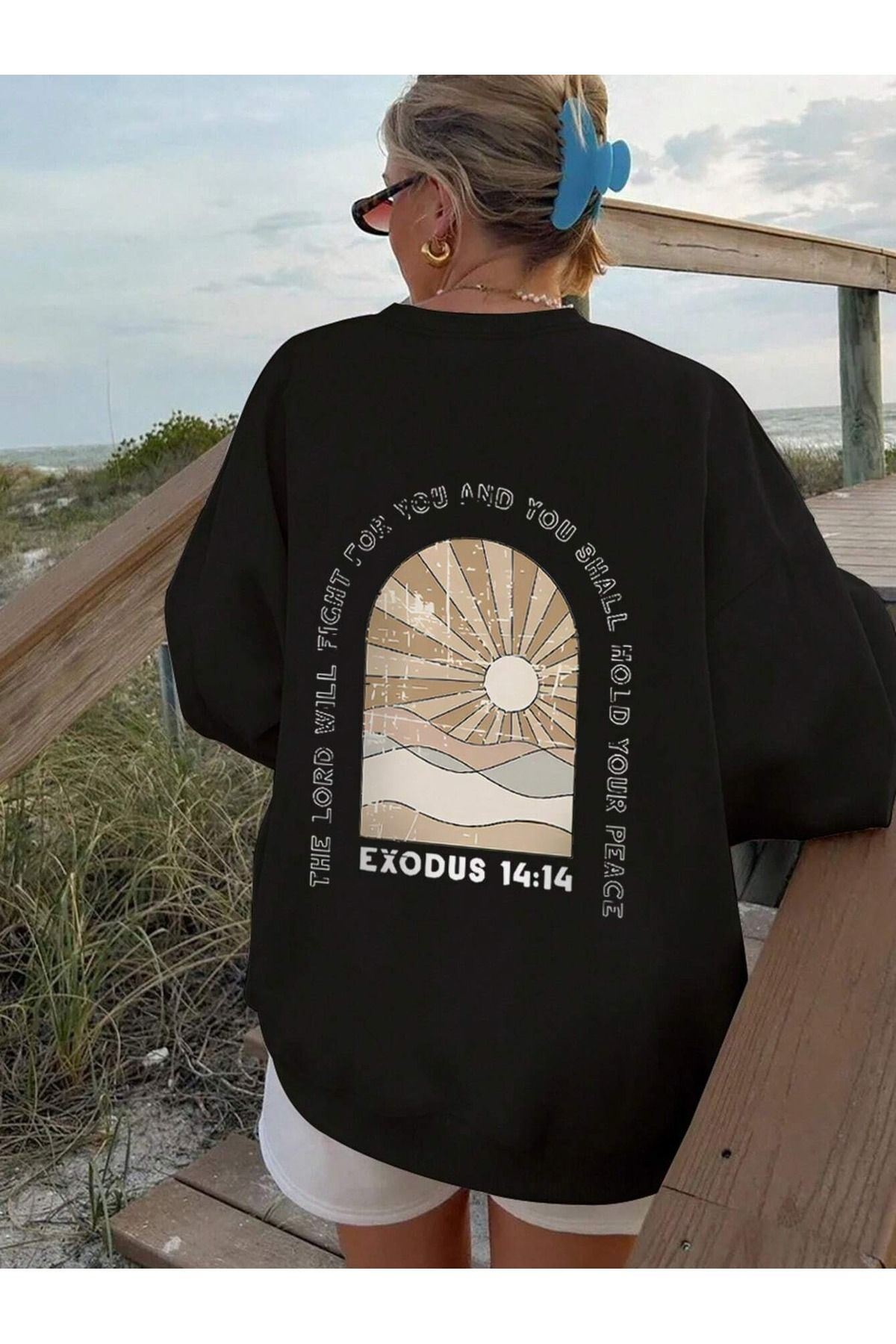 Exodus 14:14 Kışlık Kalın Sweatshirt - Siyah Baskılı Oversize Kalın Kışlık Bisiklet Yaka