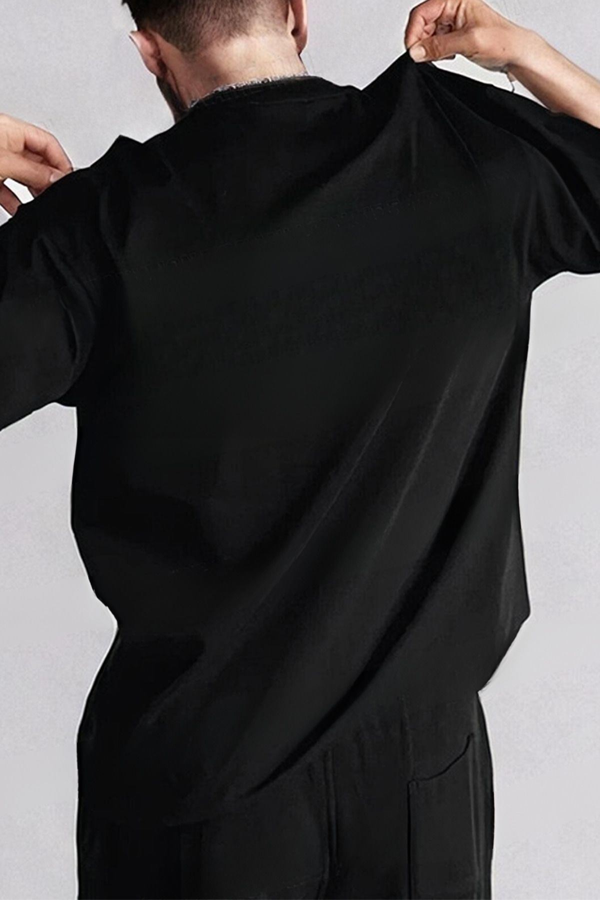 Free Life Oversize Siyah Baskılı T-shirt - Bisiklet Yaka Kısa Kol Rahat Kalıp Tişört