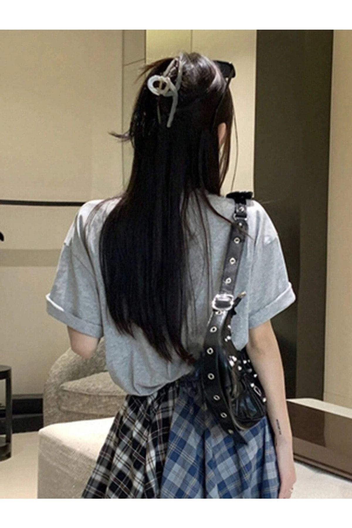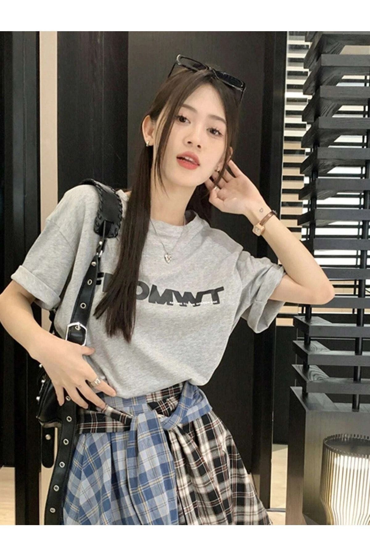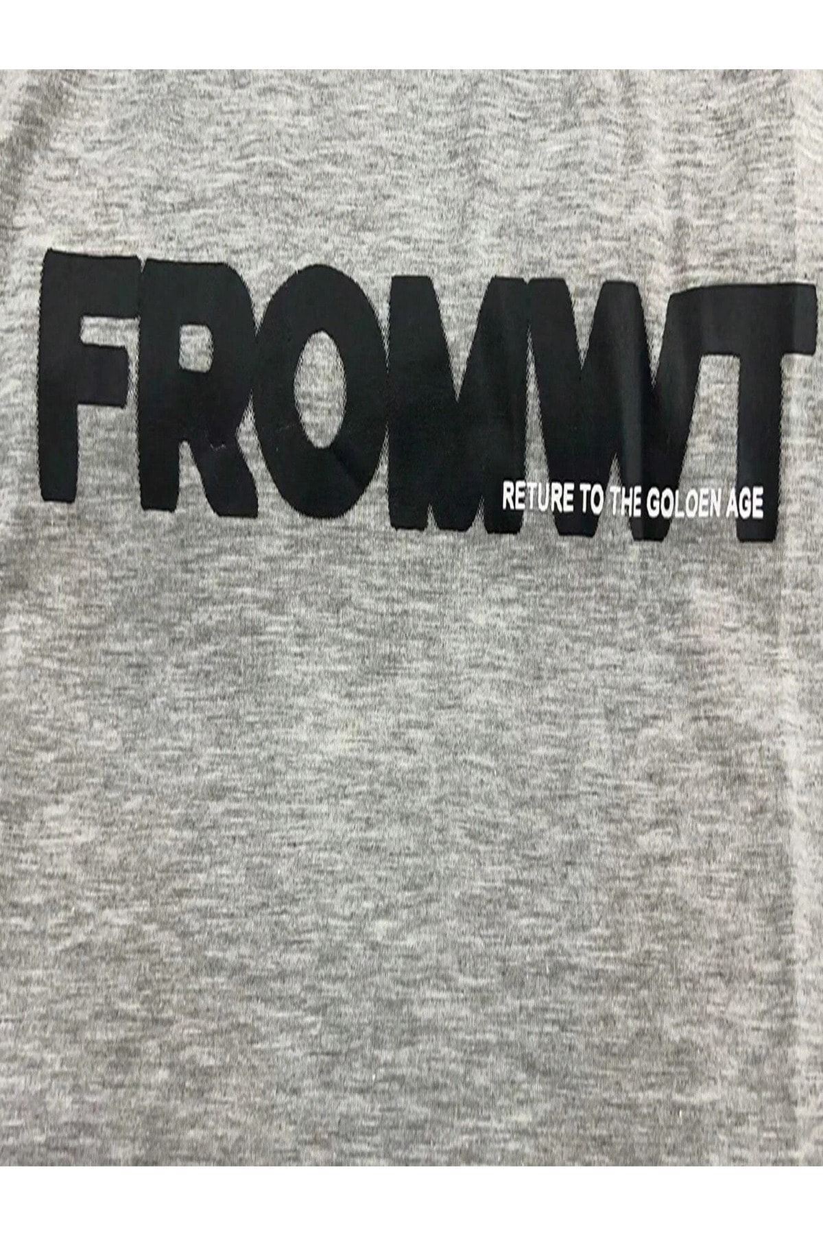 Fromwt T-Shirt - Gri Baskılı Oversize Bisiklet Yaka Kısa Kol