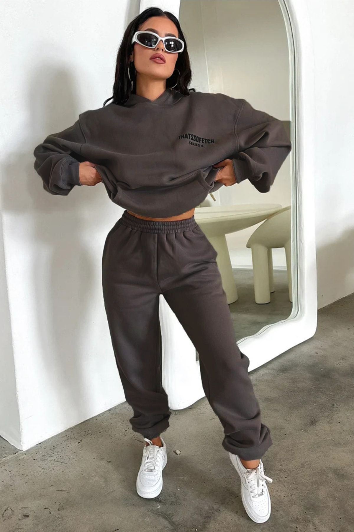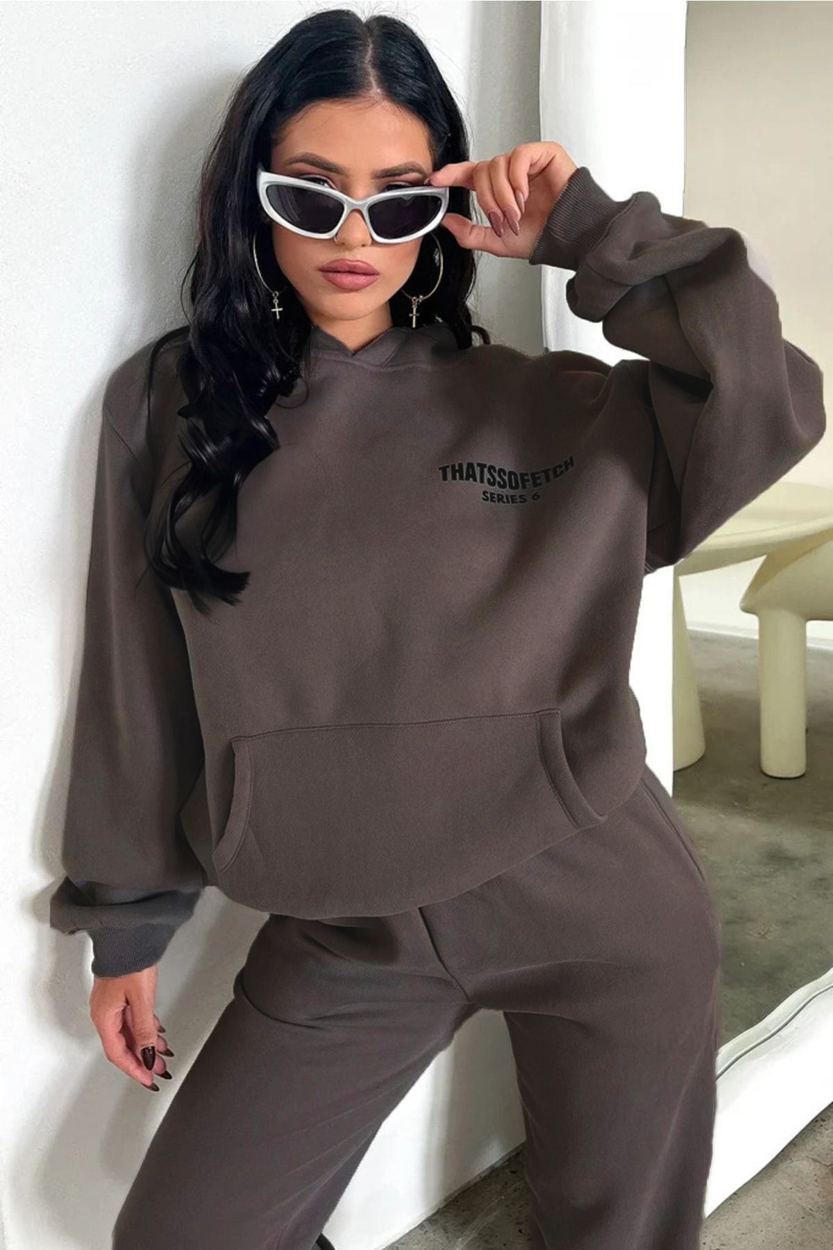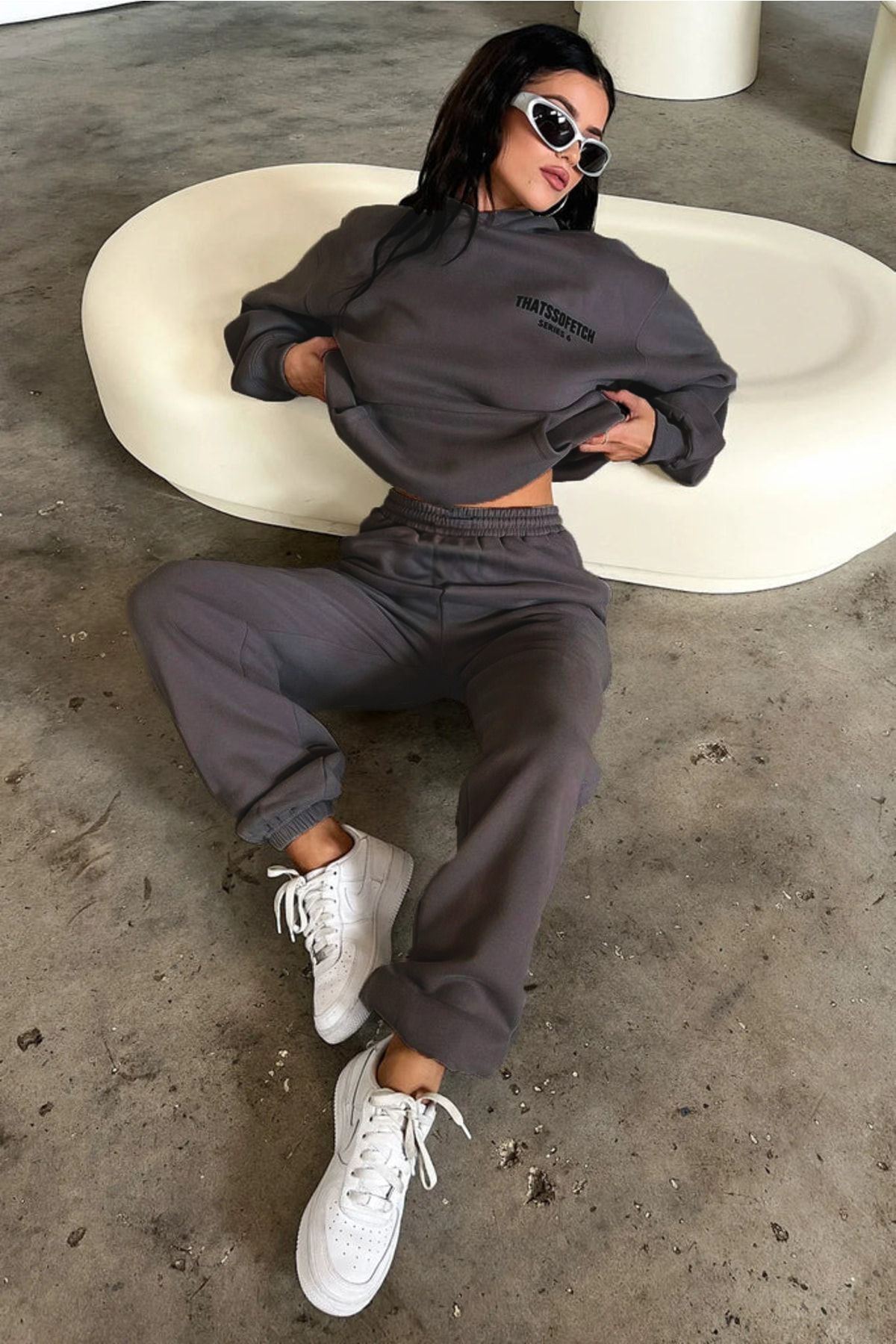 Füme Fetch Series 6 Eşofman Takımı - Baskılı Oversize Kapüşonlu
