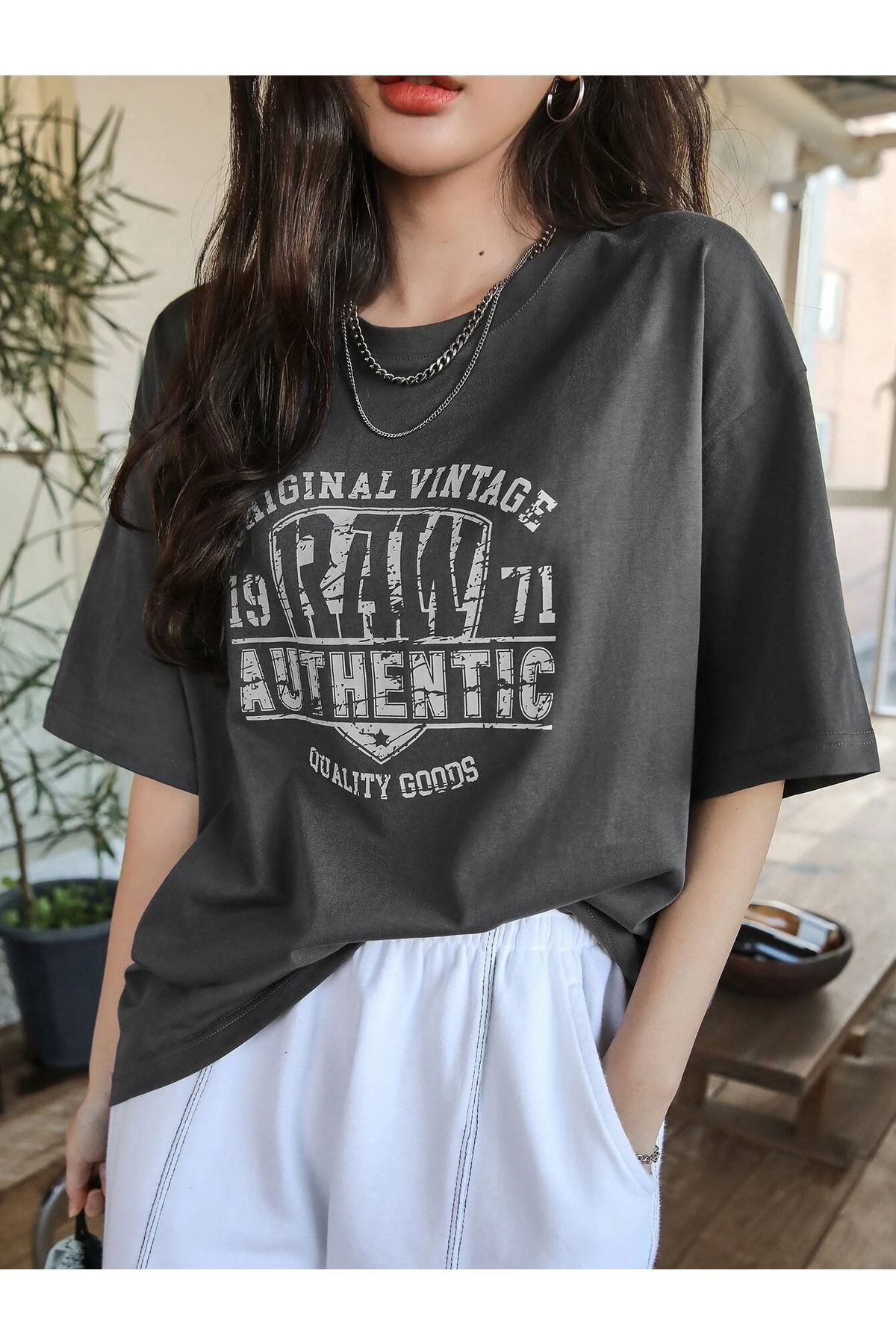 Füme Oversize Authentic T-shirt - Oversize Baskılı