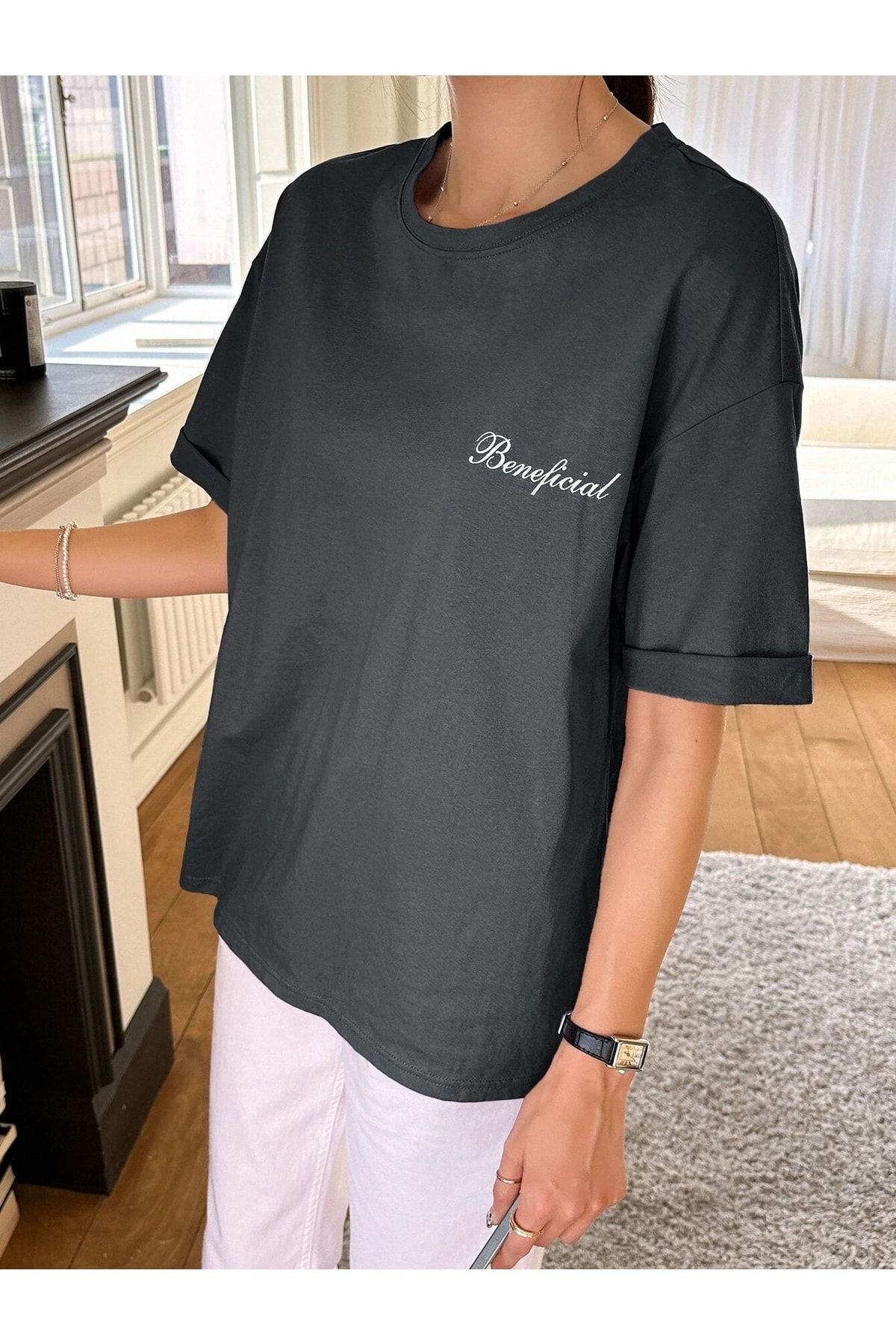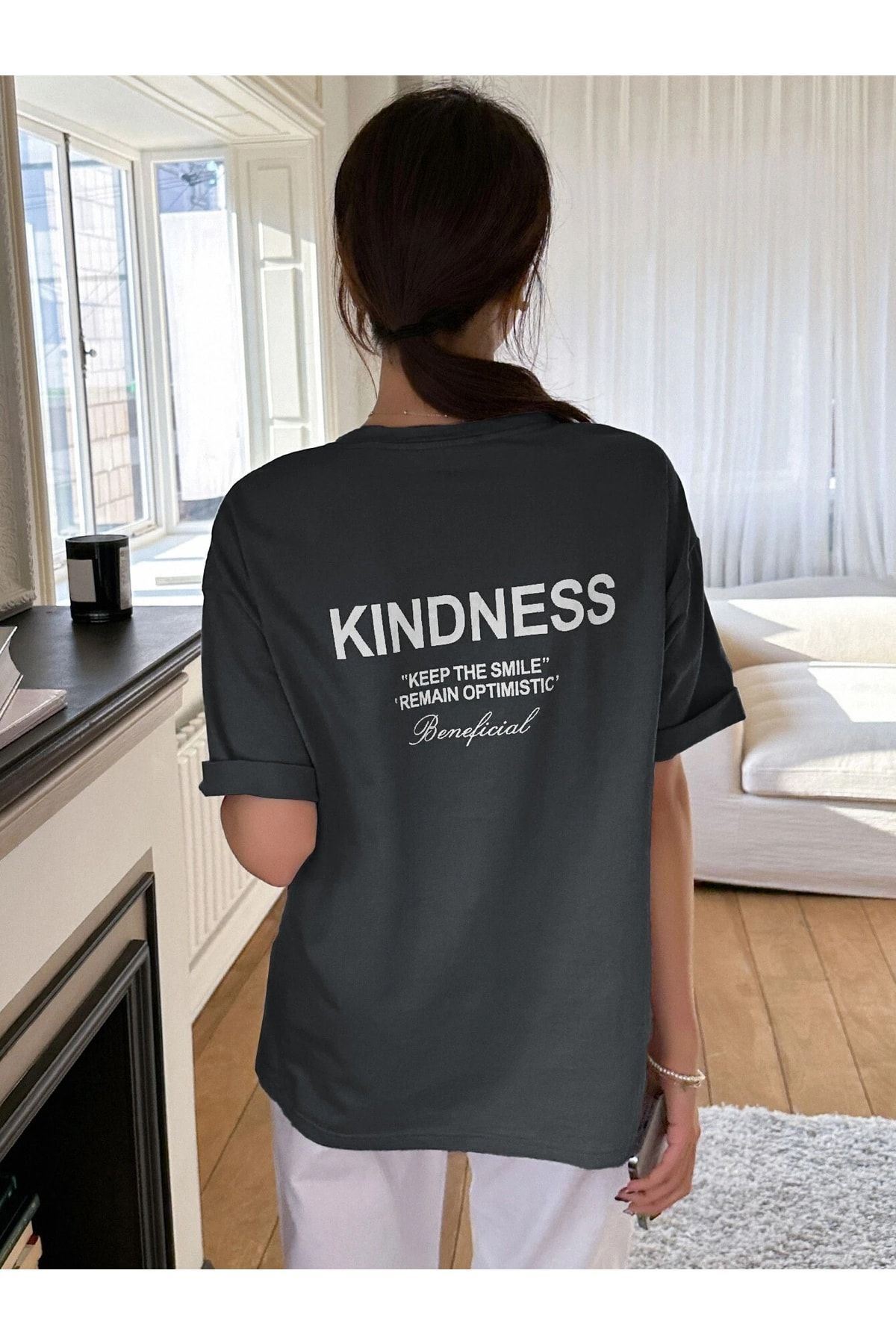 Füme Oversize Kındness T-shirt - Oversize Baskılı