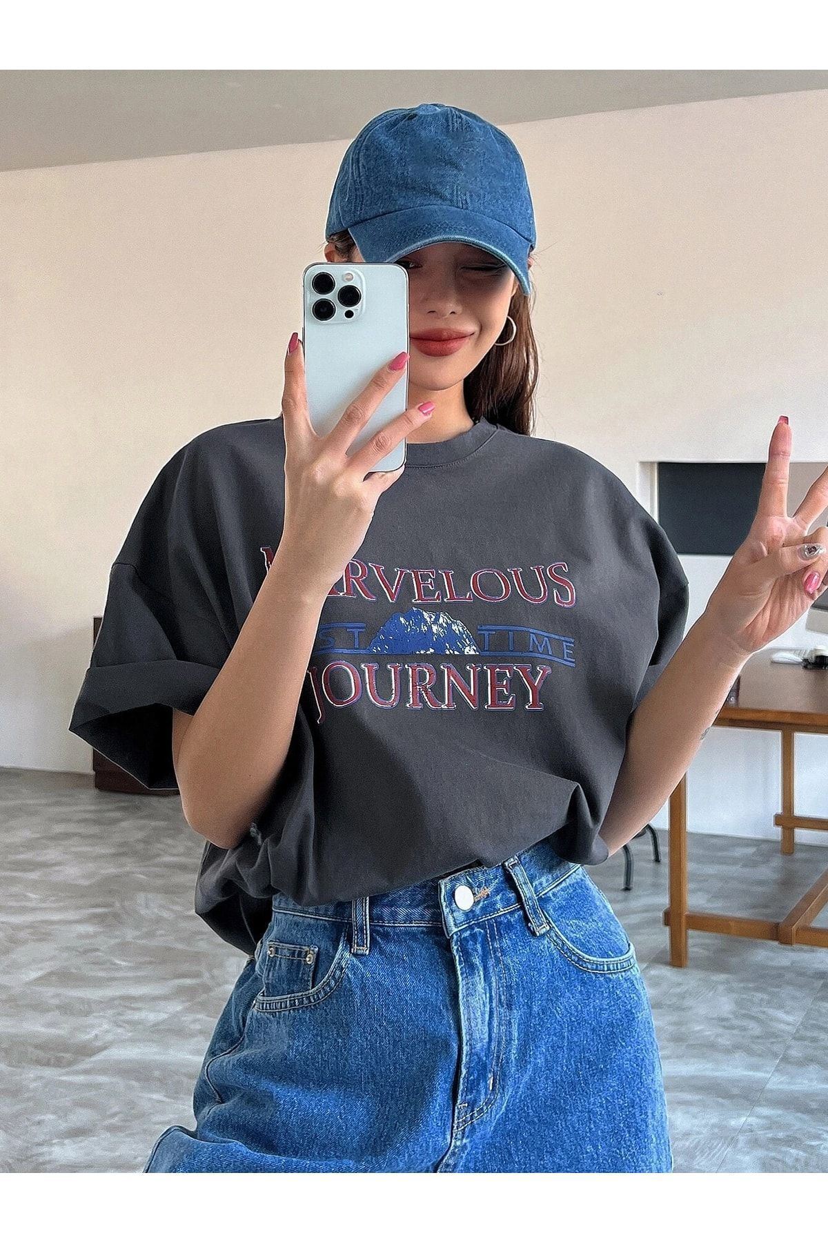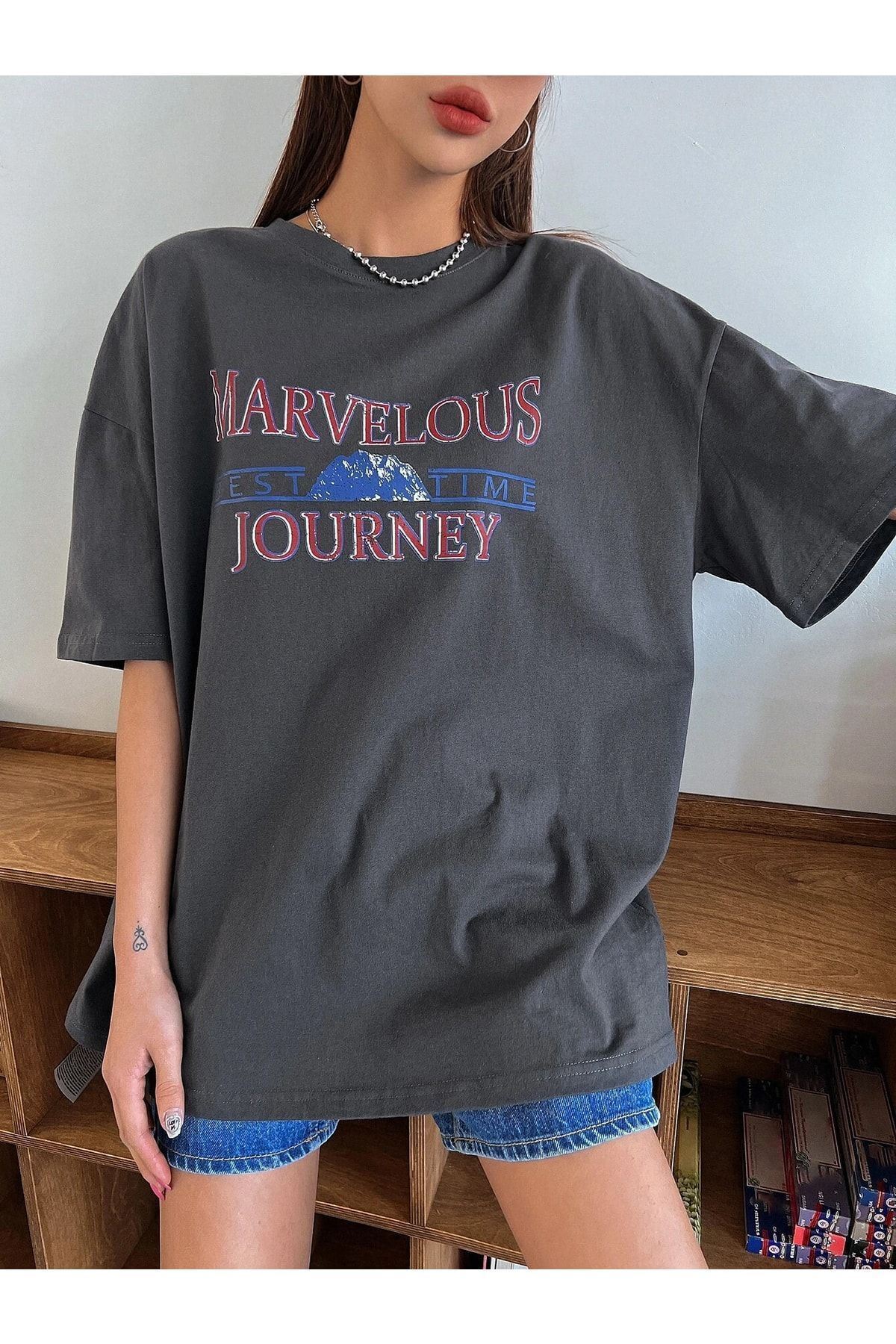 Füme Oversize Marvelous T-shirt - Oversize Baskılı