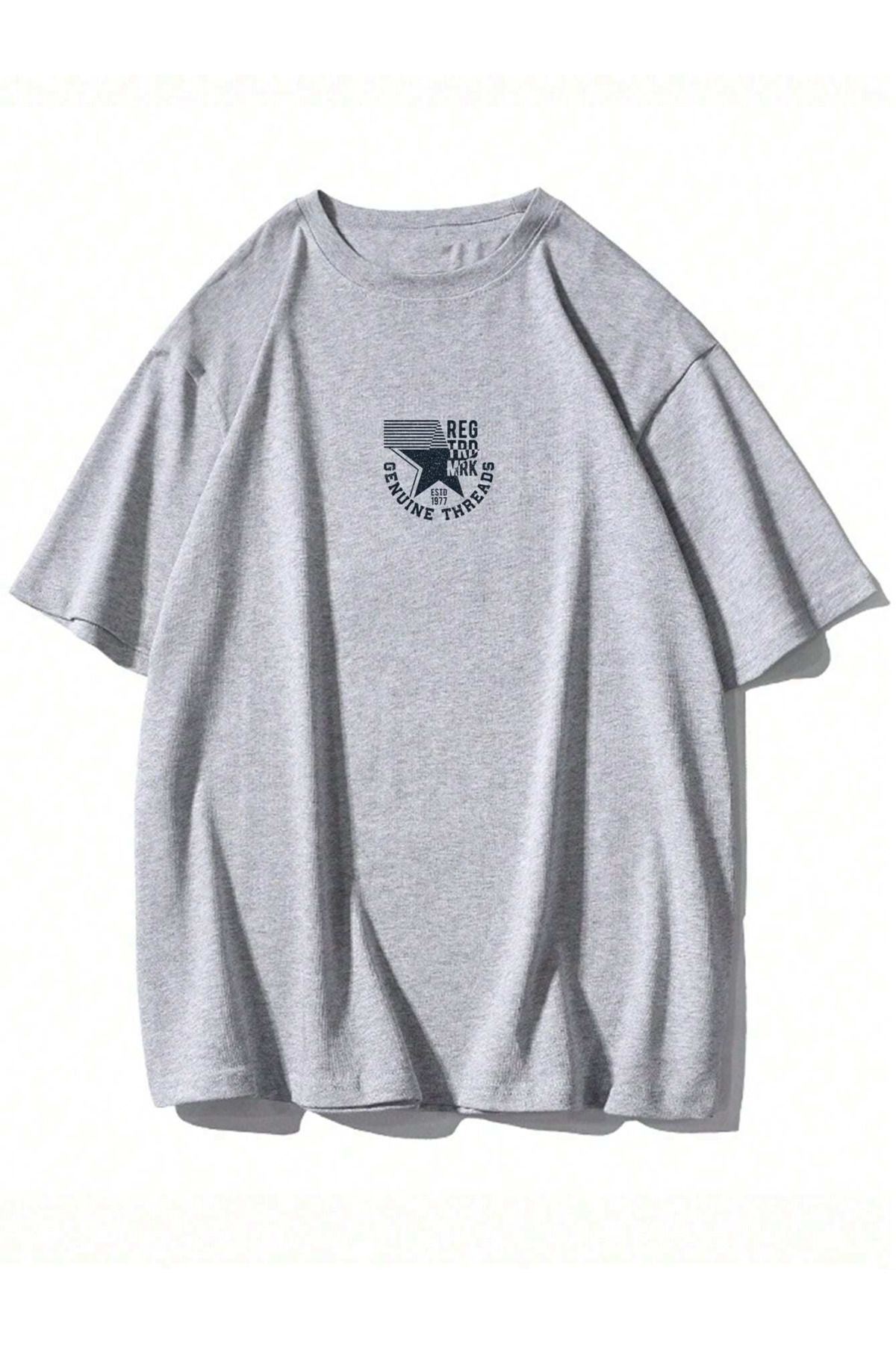 Genuıne Threads Oversize Gri Baskılı T-shirt -Kısa Kol Rahat Kalıp Tişört