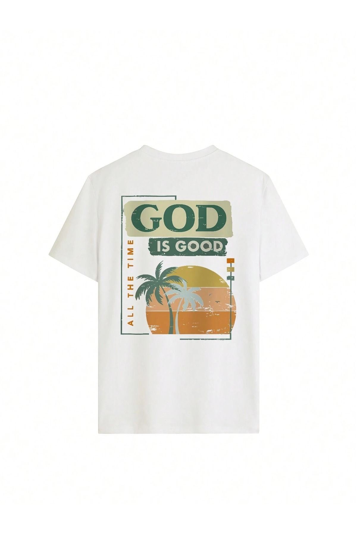 God Good Süprem T-Shirt - Beyaz Baskılı Oversize Bisiklet Yaka Kısa Kol Tişört