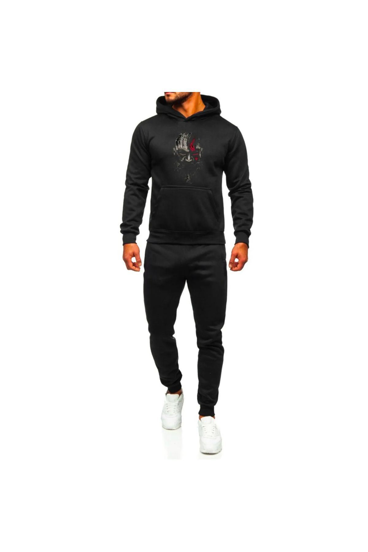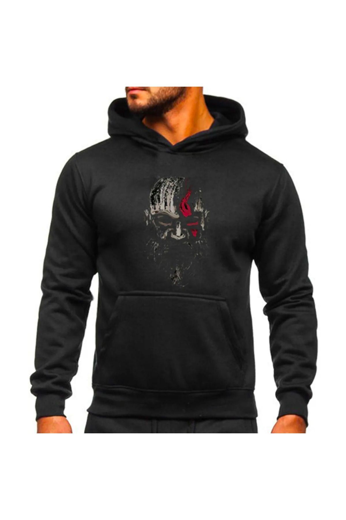 God Of War Eşofman Takımı Sweatshirt Jogger -Siyah Baskılı Oversize Şardonlu Kapüşonlu
