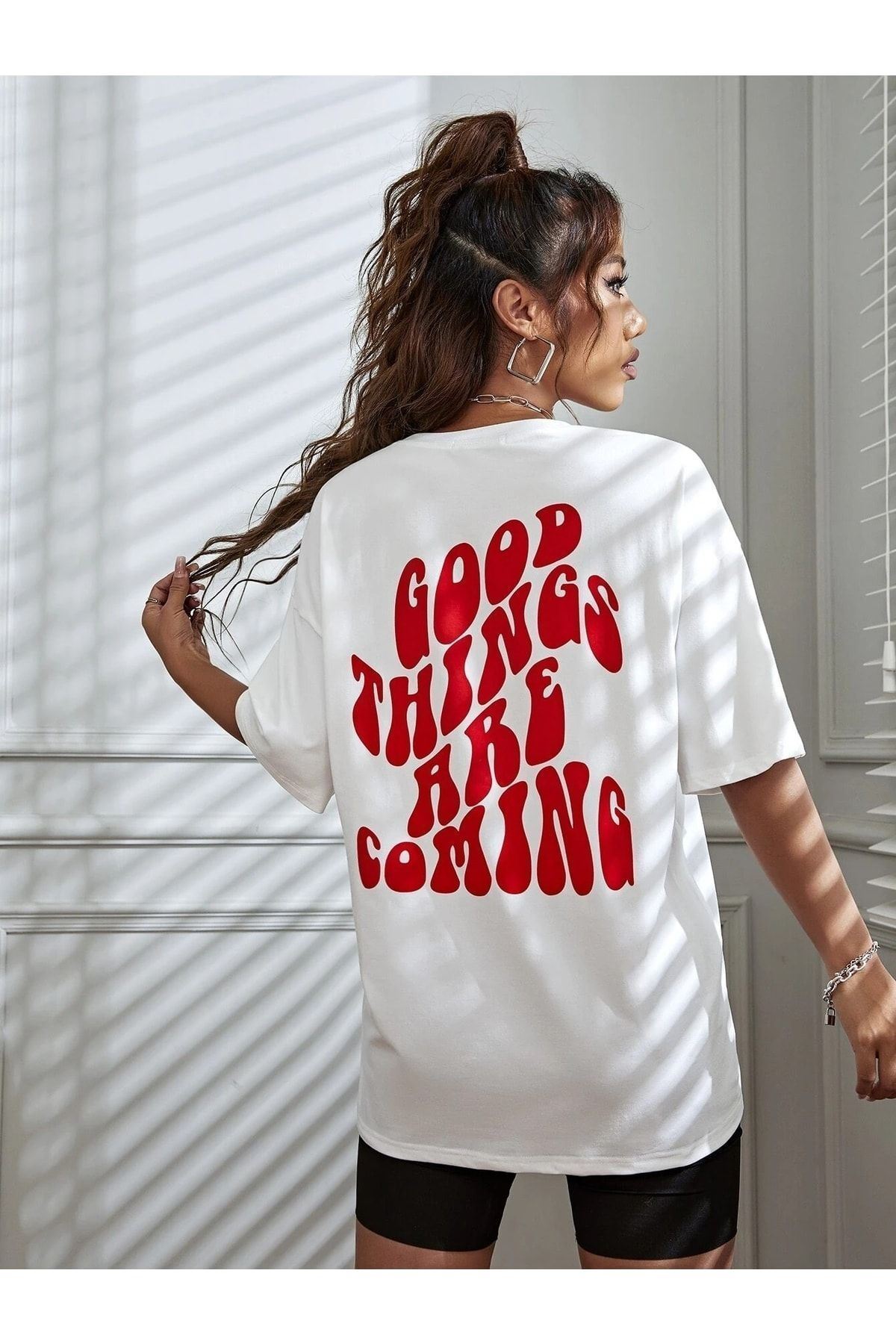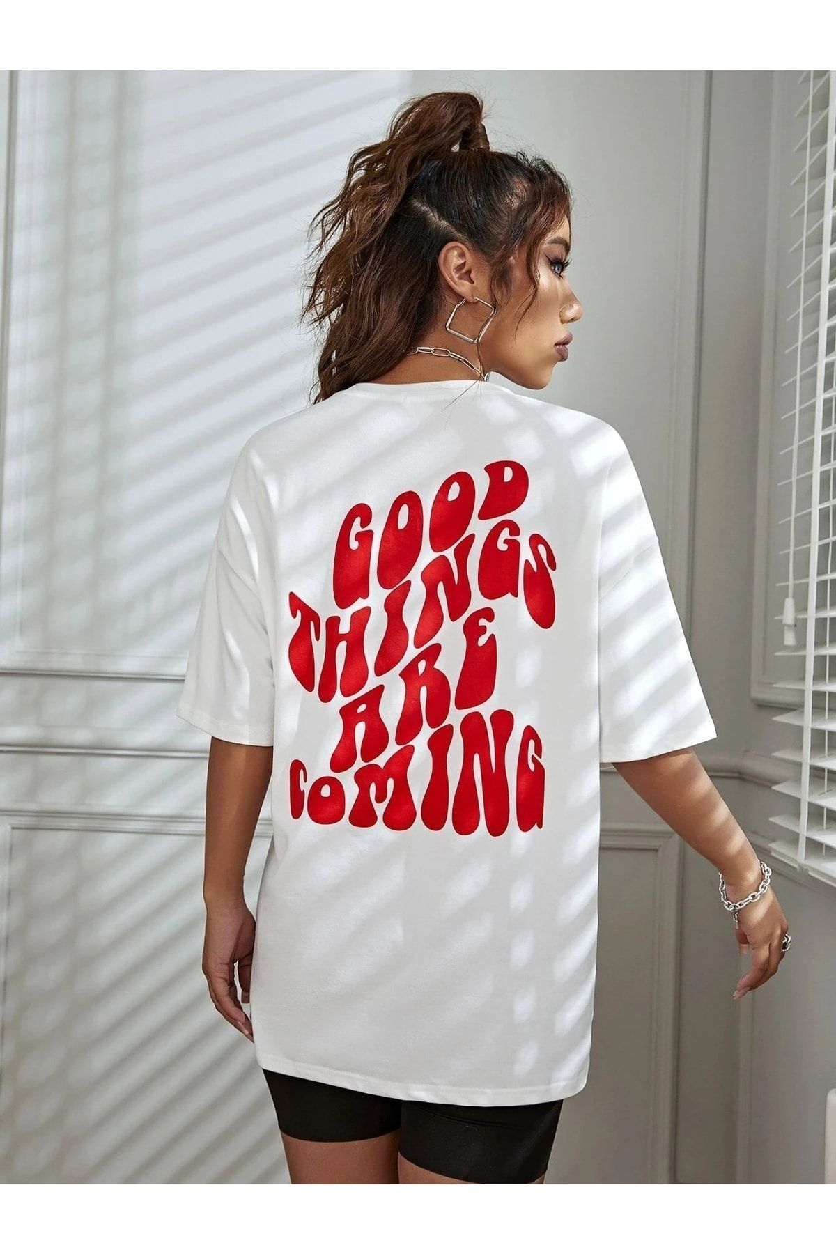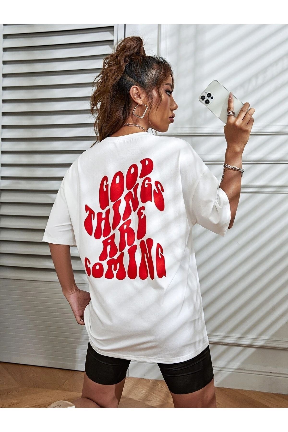 Good Things T-shirt - Beyaz Baskılı Oversize Bisiklet Yaka Kısa Kol Tişört