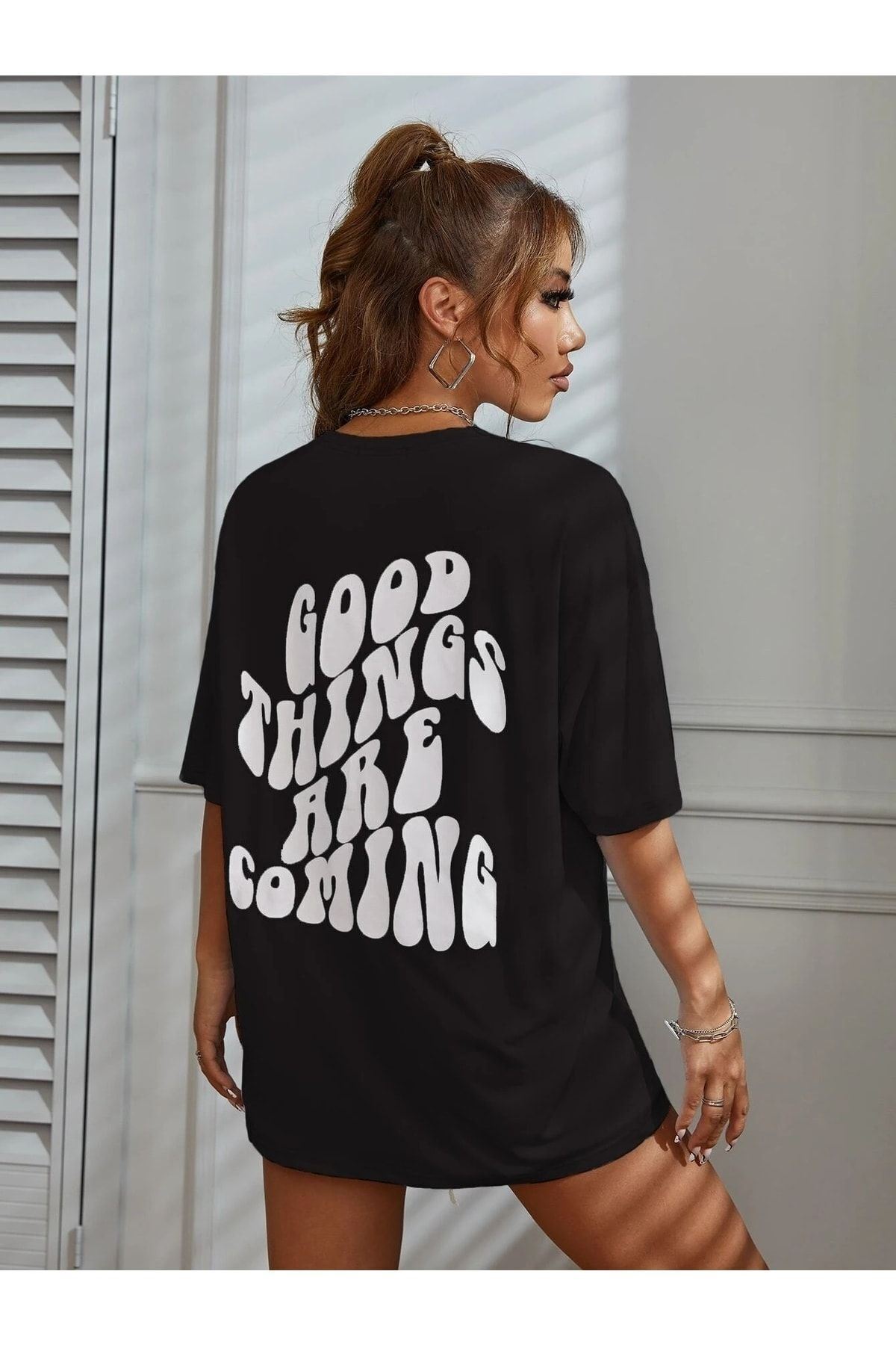 Good Things T-shirt - Siyah Baskılı Oversize Bisiklet Yaka Kısa Kol Tişört