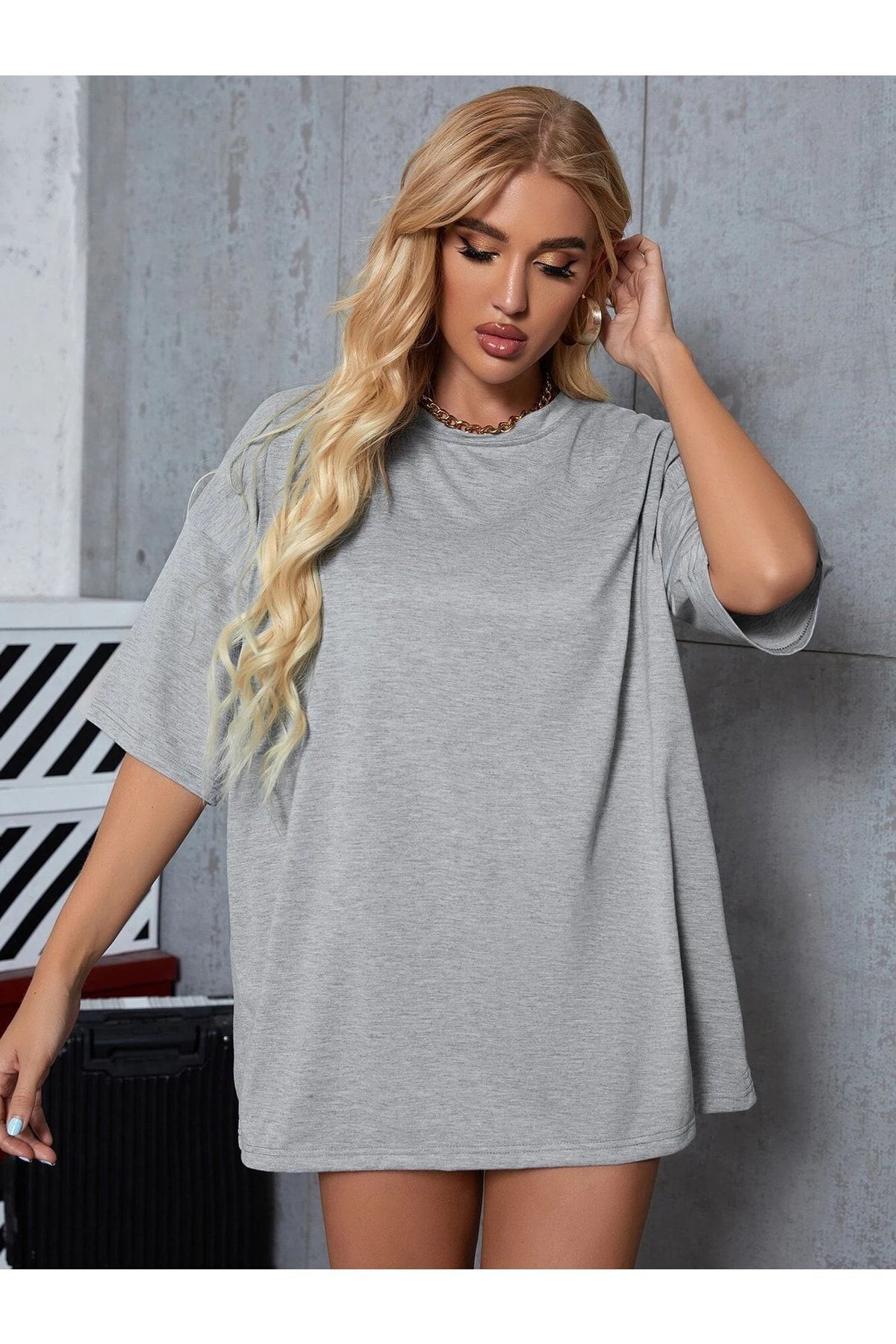 Gri Basic Düz Baskısız Oversize Salas Boyfriend Kadın T-shirt