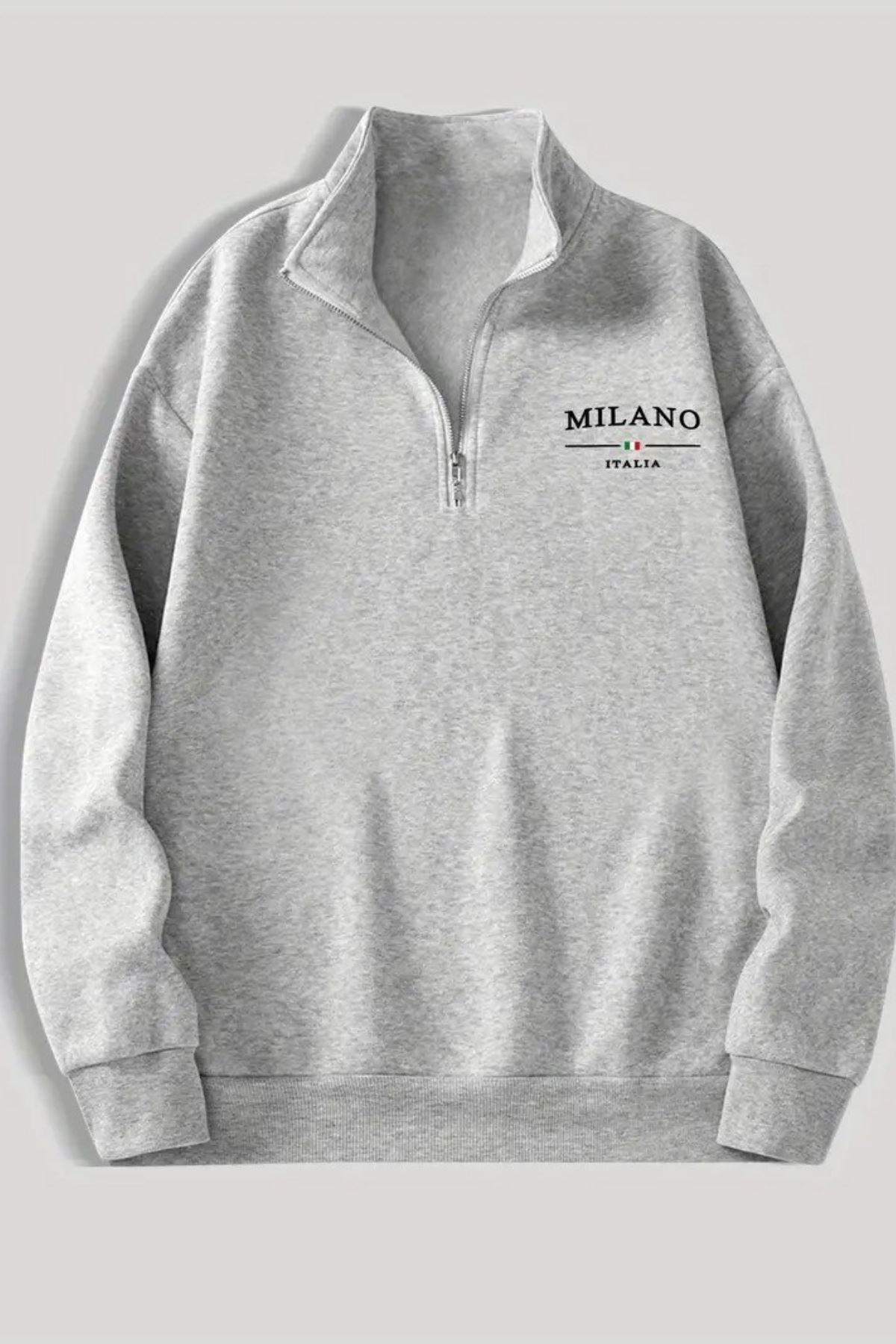 Gri Fermuarlı Dikyaka Sweatshirt- MİNİ MİLANO - Kışık Şardonlu Kumaş
