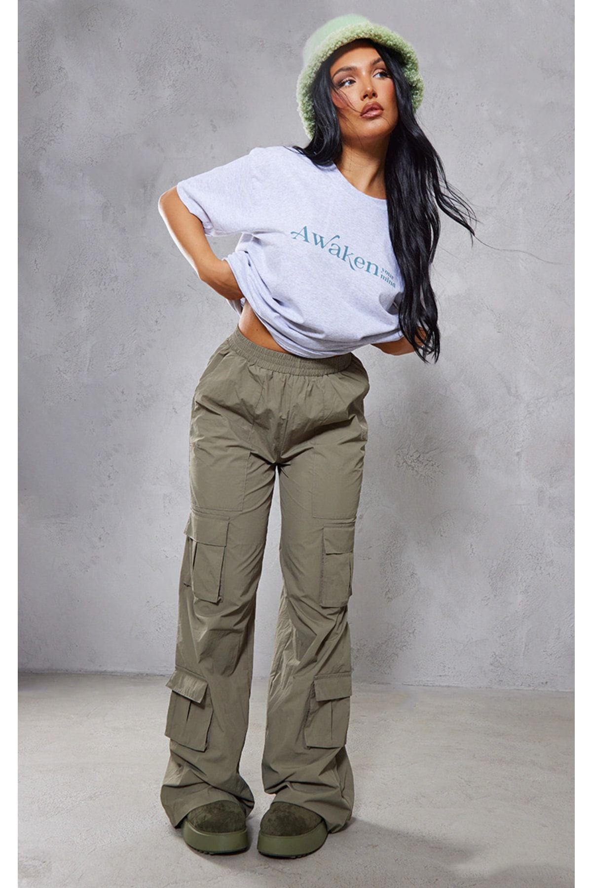 Gri Oversize Awaken T-shirt - Oversize Baskılı