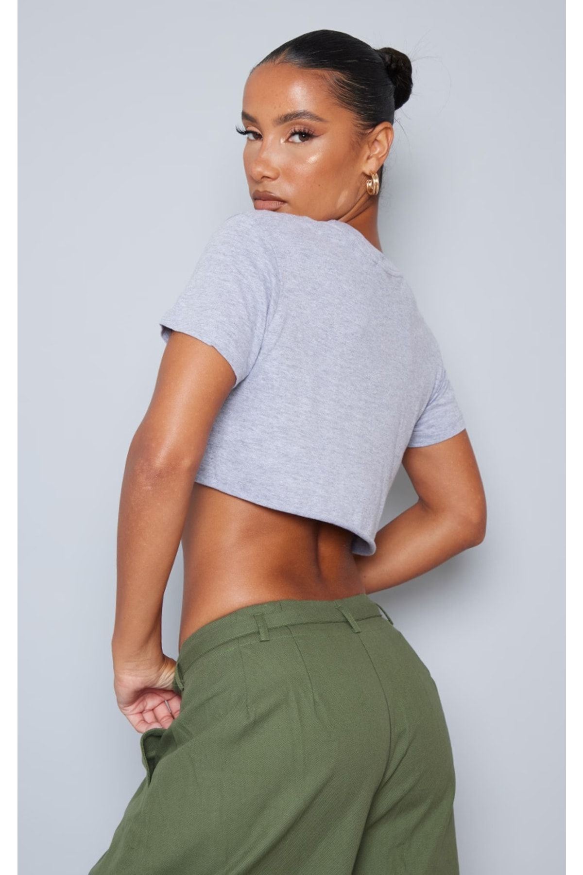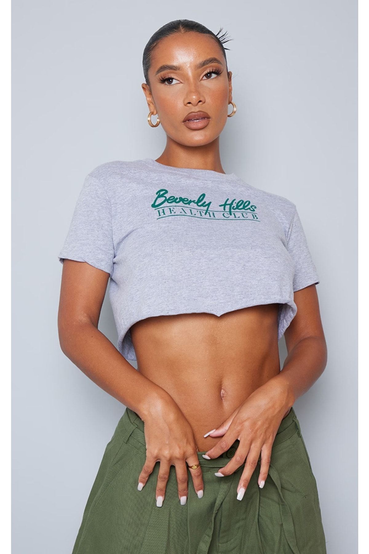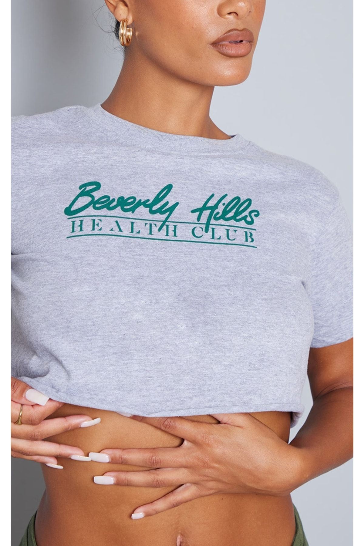 Gri Oversize Beverly Hills Crop - Oversize Baskılı