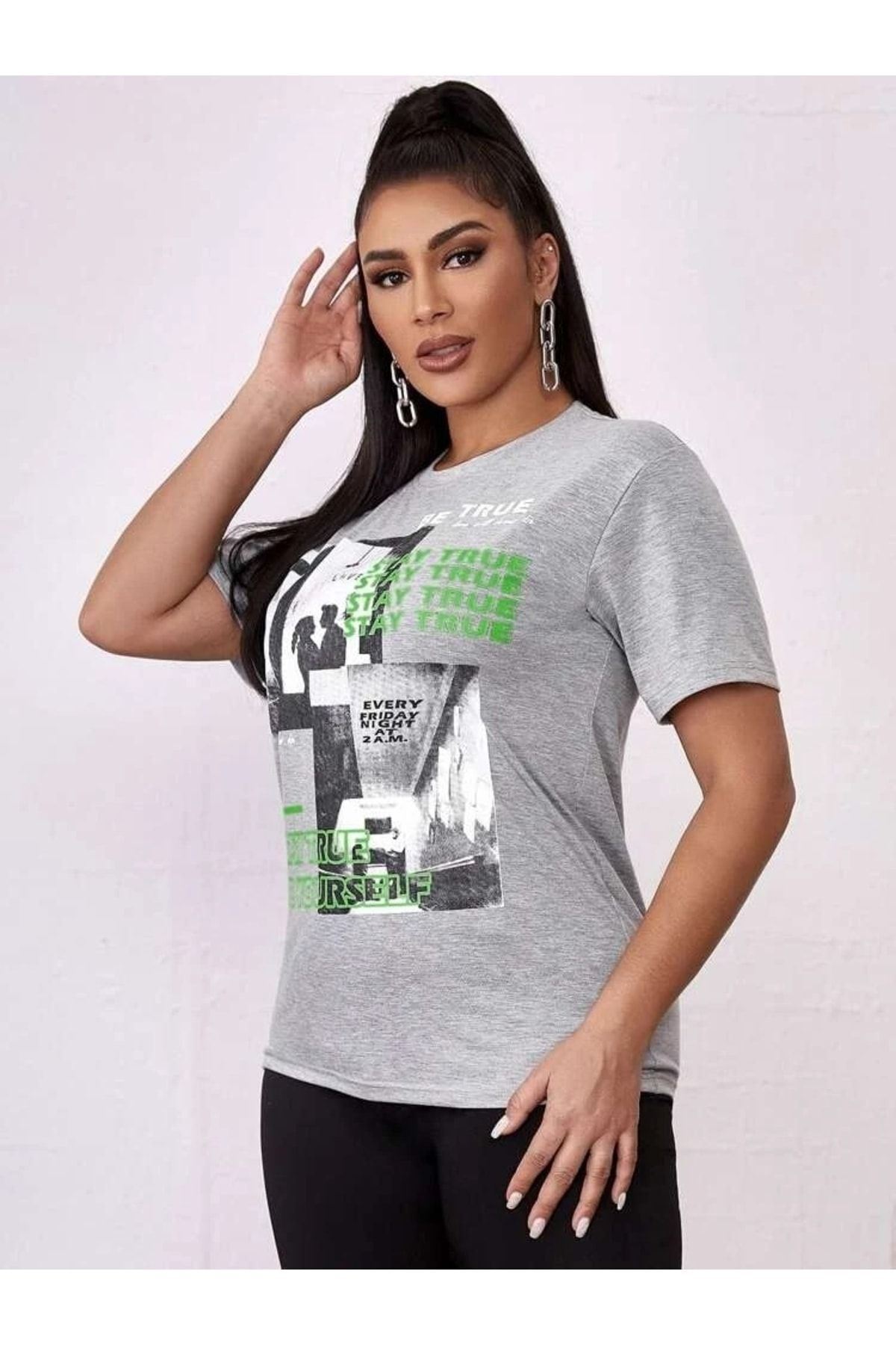 Stok Kodu GRİ-STAY-TRUE-BASKILI-T-SHİRT-Gri