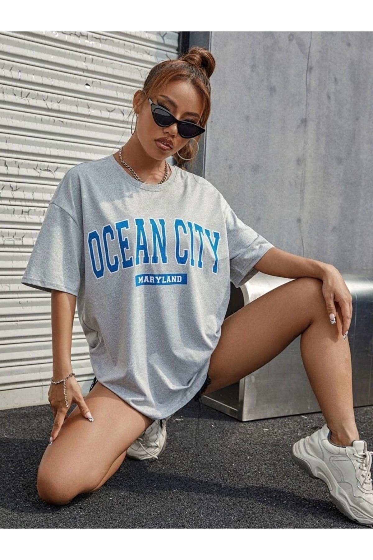 Grimelanj Oversize Ocean Cıty Baskılı T-shirt - Oversize Baskılı