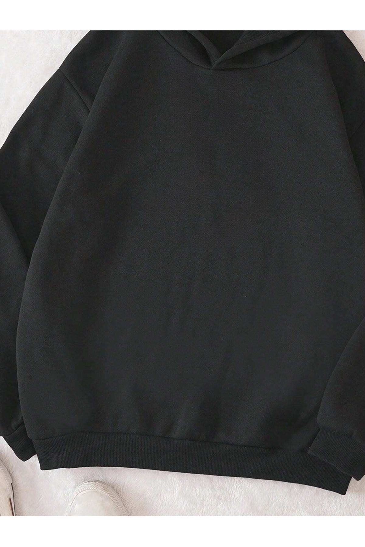 Growth Keep Calm Sweatshirt - Siyah Baskılı Oversize Kalın Kışlık Kapüşonlu