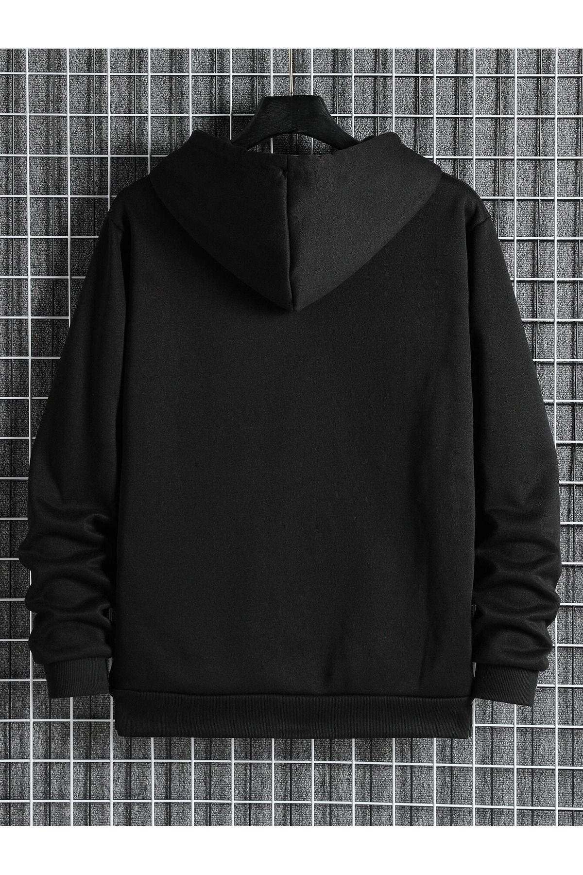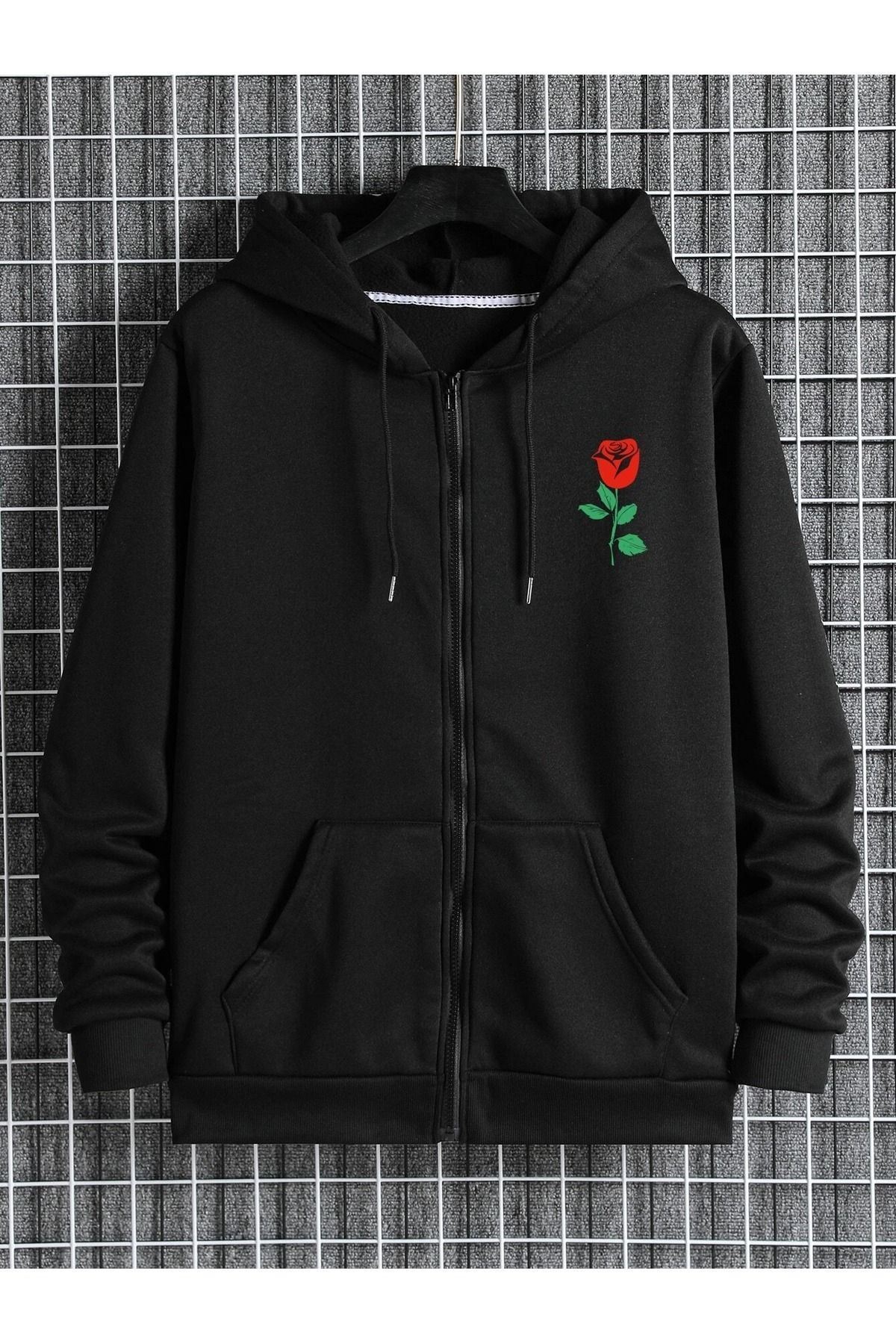 Gül Hırka - Siyah Baskılı Oversize Kapüşonlu
