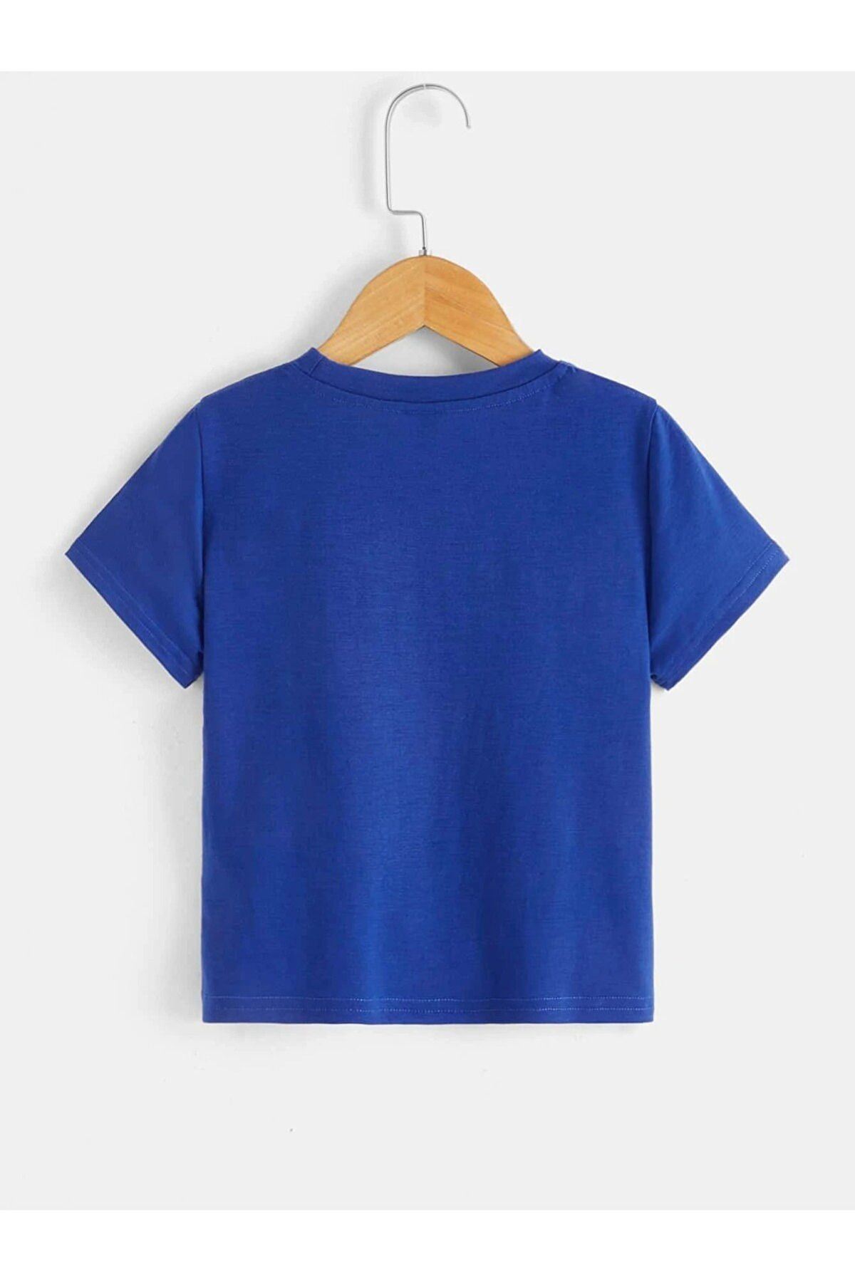 Hayvanlar Pamuklu Çocuk T-Shirt- Saks Mavi Baskılı Kız Erkek Çocuk Yazlık Bisiklet Yaka Tişört