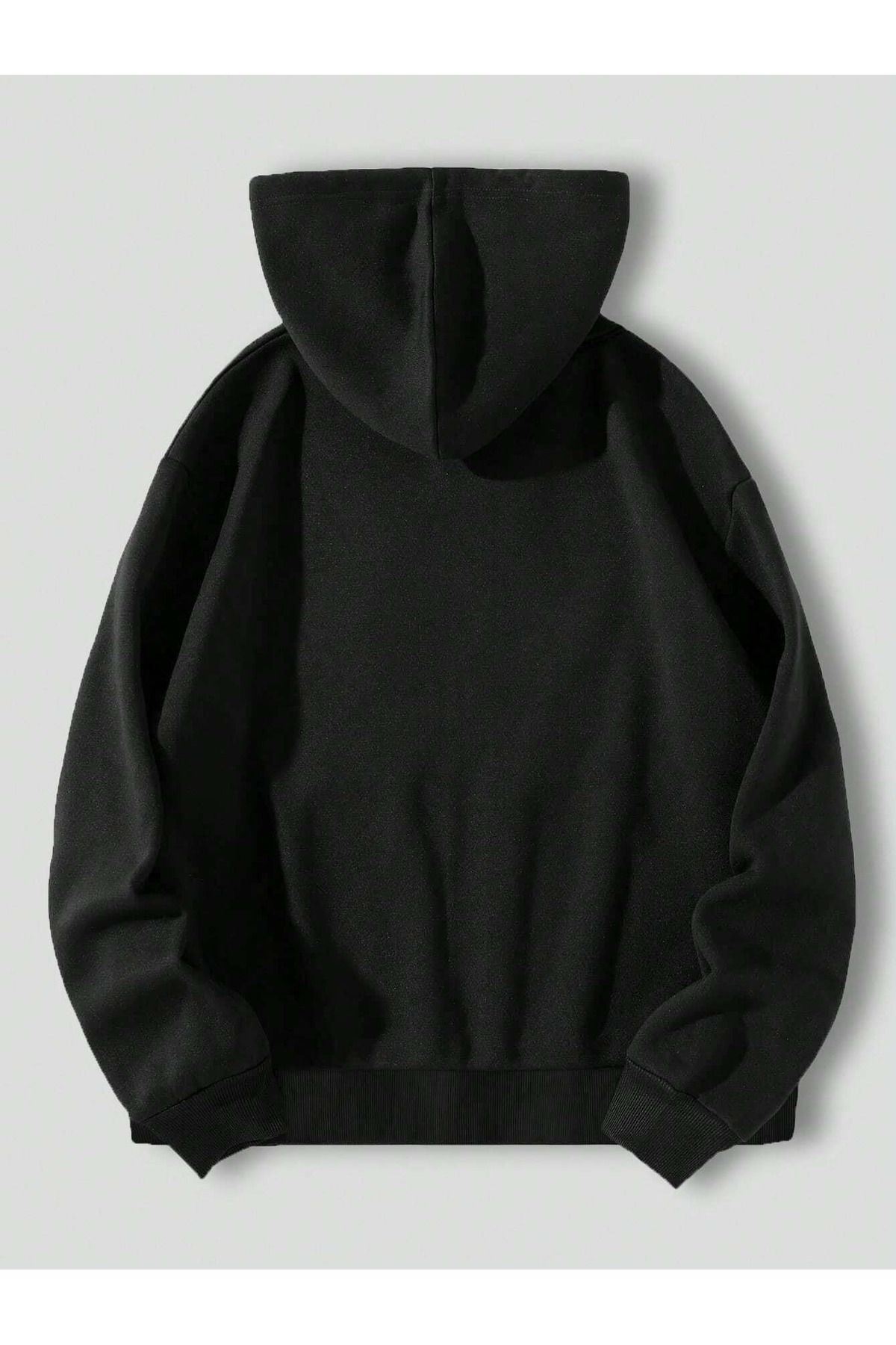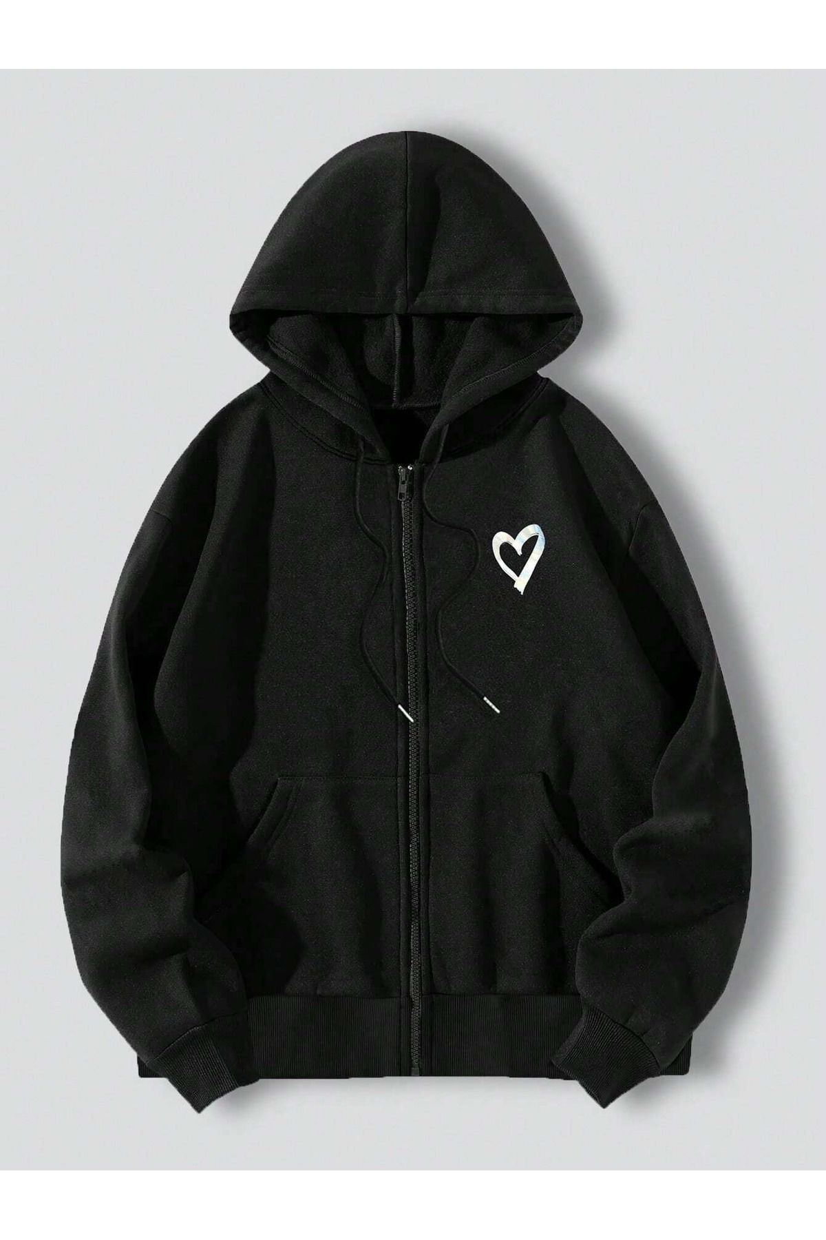 Heart Hırka - Siyah Baskılı Oversize Kapüşonlu