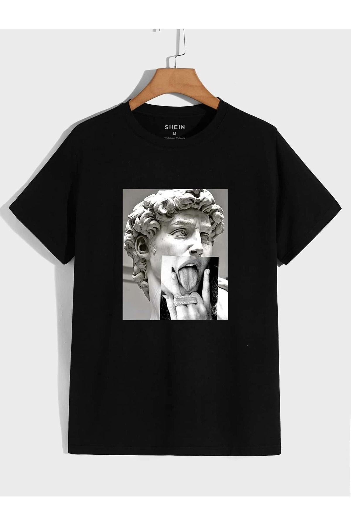 Heykel Tasarım Süprem T-Shirt - Siyah Baskılı Oversize Bisiklet Yaka Kısa Kol Tişört