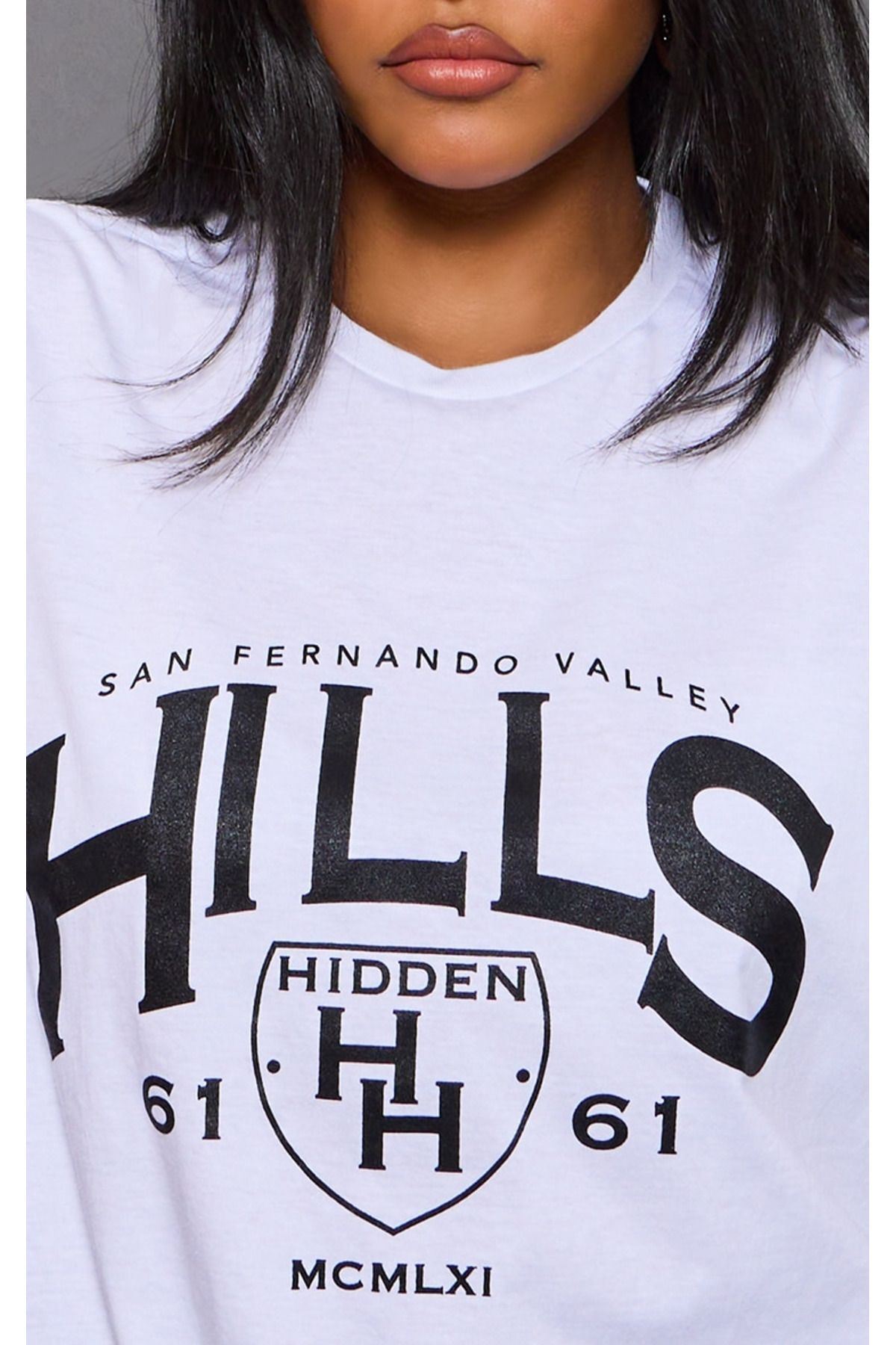 Hidden Hills Süprem T-Shirt - Beyaz Baskılı Oversize Bisiklet Yaka Kısa Kol Tişört
