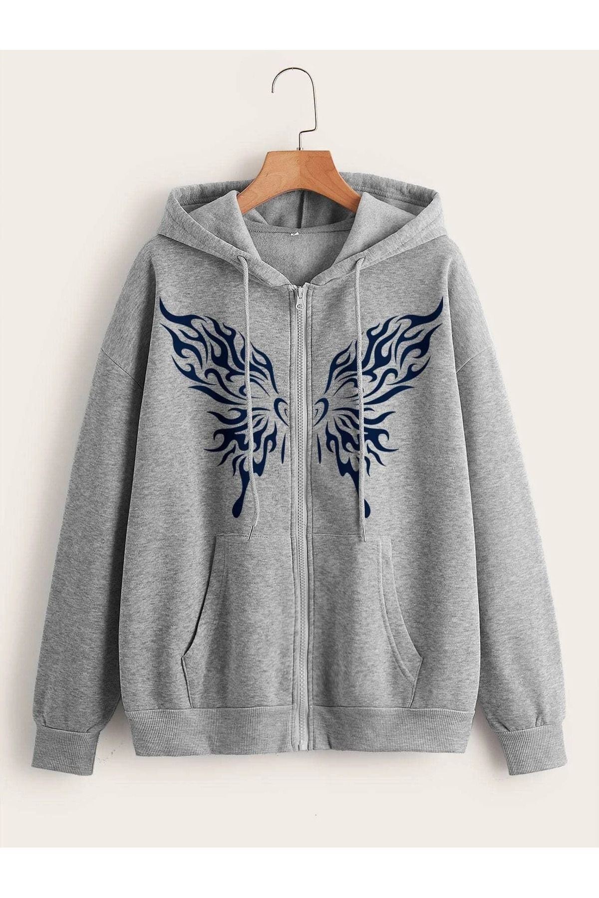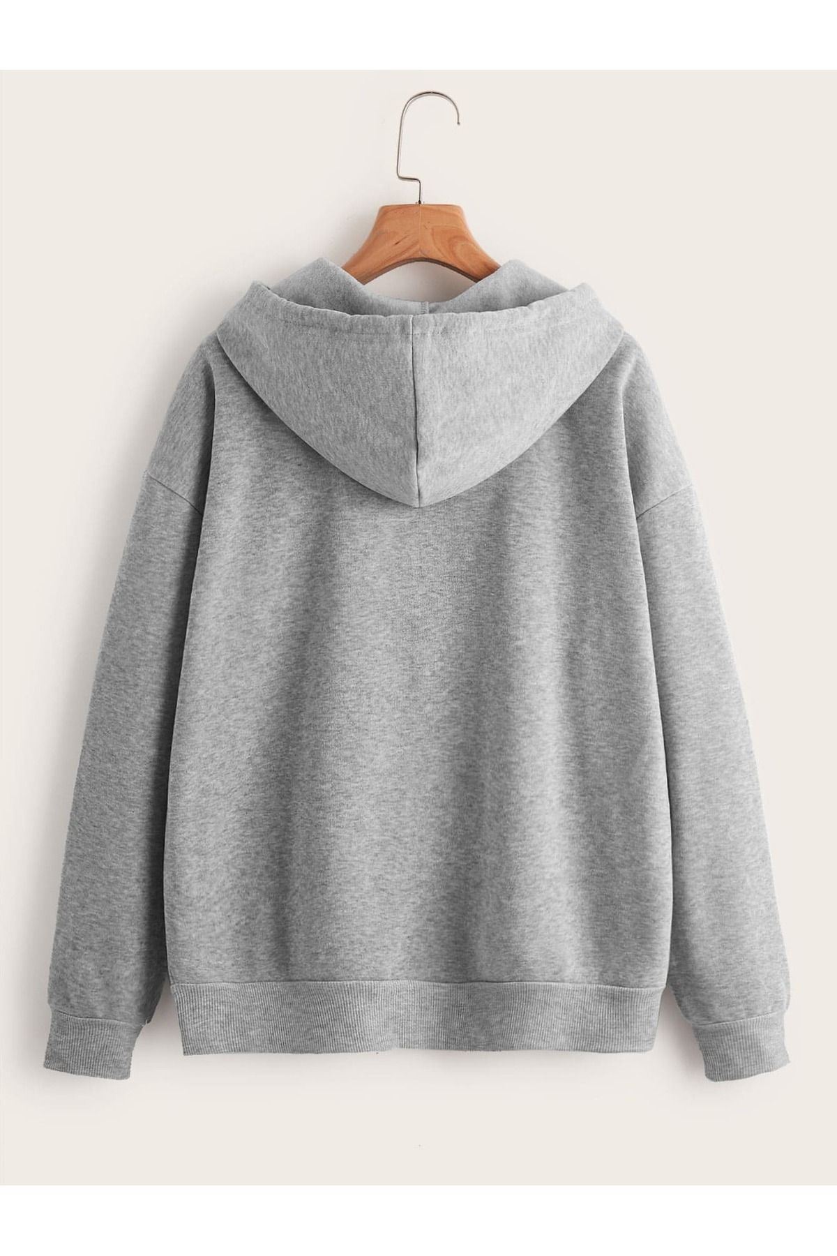 Hırka - Gri Baskılı Oversize Kapüşonlu Unisex