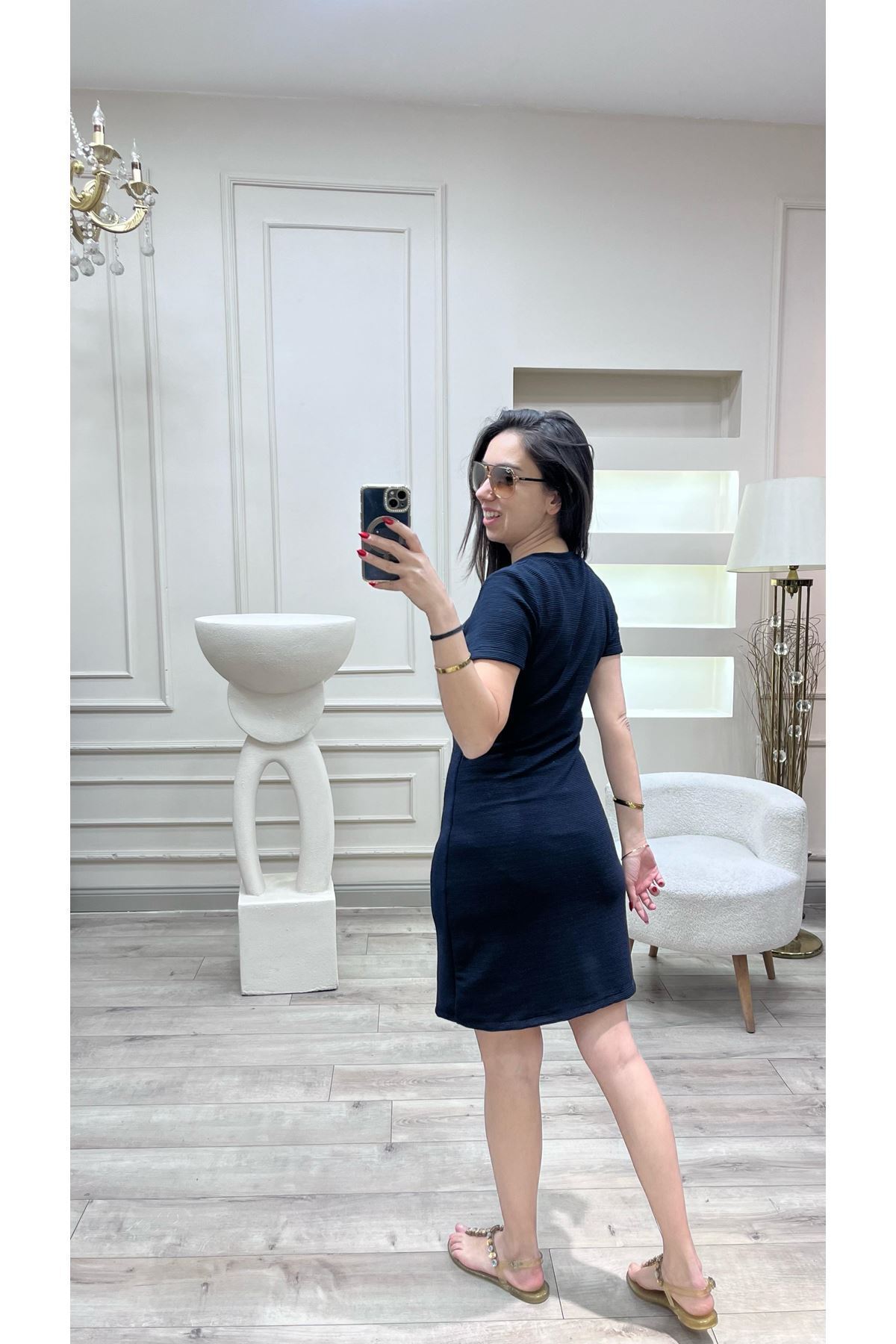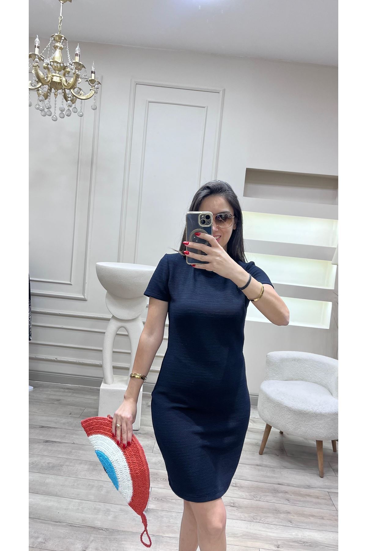 - Lacivert rengiyle şıklığı ve zarafeti bir arada sunan kadın elbise, günlük kullanım için idealdir.; - Kısa kollu tasarımı ile rahat hareket etme özgürlüğü sağlar ve yaz aylarında serin tutar.; - Standart boy kesimi sayesinde farklı vücut tiplerine uyum sağlar ve her ortamda şık görünmenizi garanti eder.; - Tekli paket içeriğiyle pratik bir kullanım sunarken, her yaş grubuna hitap eden modern çizgiler taşır.; - Kemersiz yapısıyla basit ama etkileyici bir siluet oluşturur; böylece her türlü aksesuarla kolayca kombinlenebilir.; - 30 derecede makinede tersten yıkama imkanı sayesinde bakımı kolaydır ve ütülenmesi de oldukça pratiktir.; - %65 pamuk içeriği cildinizin nefes almasına yardımcı olurken, viskoz ve likra karışımından oluşan materyali esneklik kazandırır.; - Bisiklet yakası ile sade ve modern bir görünüm sunarken slim fit kalıbıyla vücut hatlarınıza mükemmel uyum sağlar.; - Tüm sezonlarda tercih edebileceğiniz bu elbise, gardrobunuzdaki temel parçalar arasında yerini alacak.; - Kapamasız tasarımının yanında astarsız oluşu da minimalist tarzınıza katkıda bulunur.; - Dokuma kumaşı dayanıklılığı arttırarak uzun süreli kullanım vaat ederken, orta kalınlığı mevsim geçişlerinde ideal konforu sunar.; - Trend ortamlarda dahi stil sahibi görünmenizi sağlayacak bu elbise, cool & comfort persona ile özdeşleşerek her anınızda yanınızda olacak.; - Baskısız olmasıyla sadeliği ön plana çıkaran bu parça, düz deseniyle zamansız şıklığı yakalar.; - Yıkamalı özelliği sayesinde kolayca temizlenebilir; böylece sık yıkama gerektiren günlerde bile rahatlıkla tercih edebilirsiniz.; XL bedeniyle geniş beden skalasına hitap ederek herkes için uygunluk sunar.