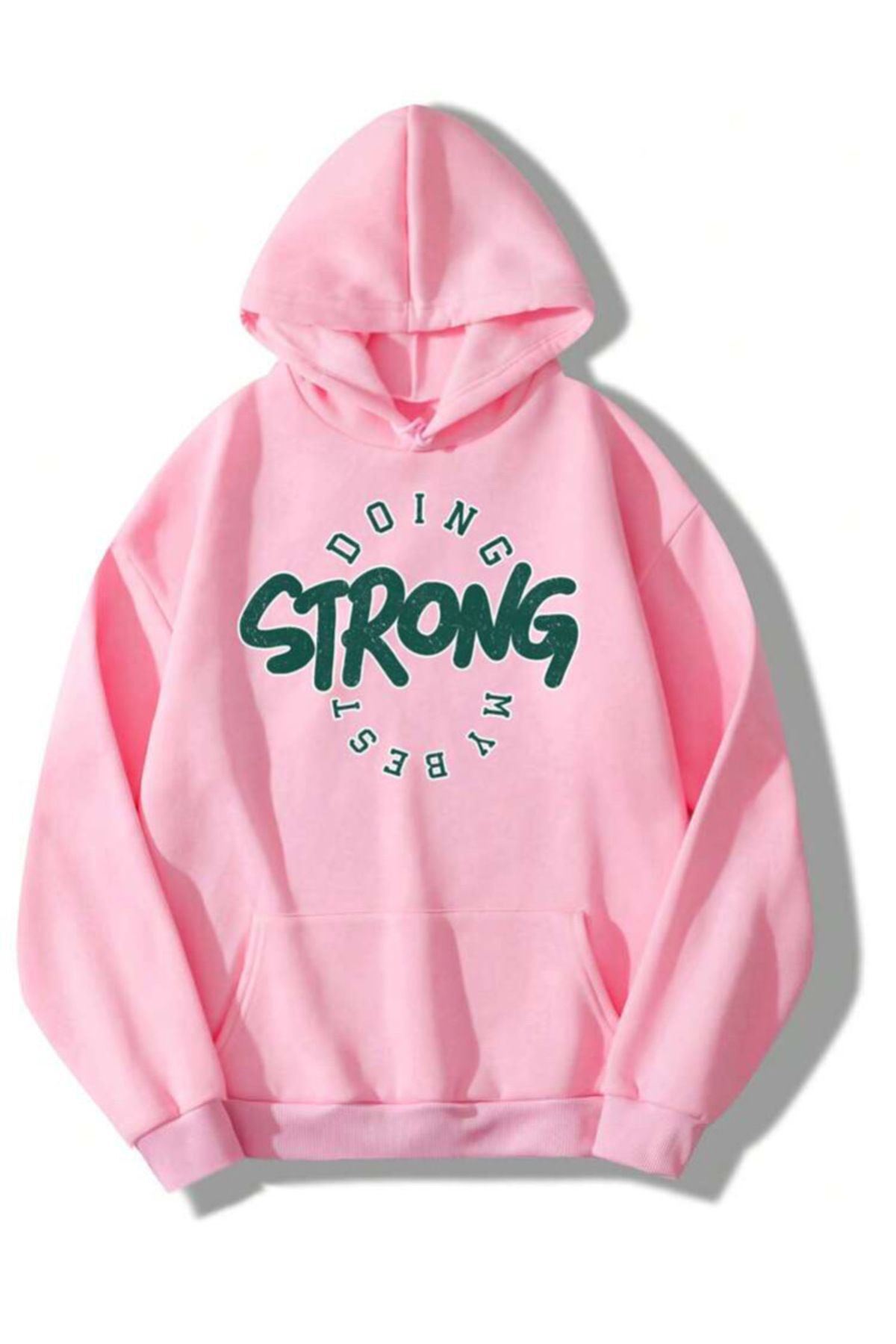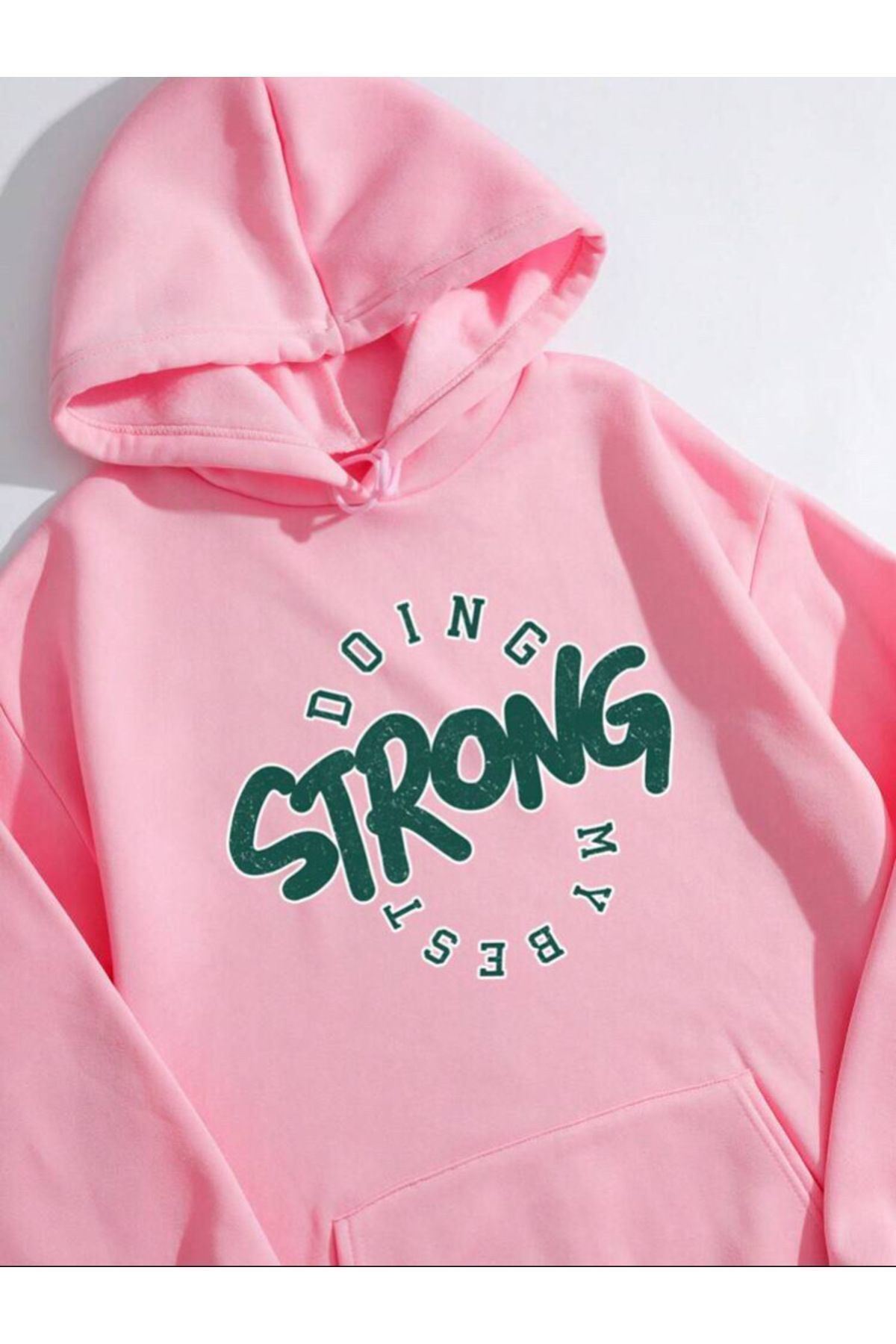 Rahat kesimi ile her vücut tipine uyum sağlayan oversize tasarım.; Uzun kollu yapısı sayesinde mevsim geçişlerinde ideal sıcaklık sunar.; %100 organik pamuk kumaşı, nefes alabilirliği ve konforu ön planda tutar.; Organik materyaliyle sürdürülebilir moda anlayışını benimseyenler için idealdir.; Canlı pembe rengiyle dikkat çekici bir stil oluşturmanızı sağlar.; Kanguru cep detayı pratik kullanım imkanı sunarken, motto baskısı ise kişisel ifadeye olanak tanır.; Kapüşonlu yaka tipi ile hem şık hem de fonksiyonel bir görünüm kazandırır.; Standart boy tasarımıyla farklı boylara uygunluk gösterir.;