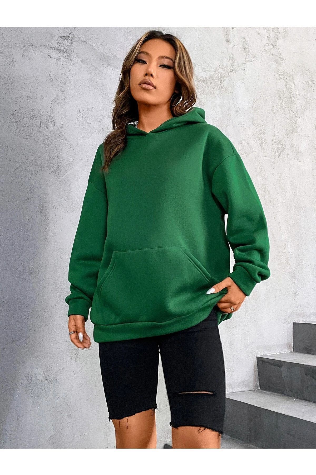 Örme kumaş yapısı ile konforlu bir kullanım sunar ve tüm yaş gruplarına hitap eder; Oversize kalıbı sayesinde rahat bir giyim deneyimi sağlar ve hareket özgürlüğü tanır; Uzun kollu tasarımı ile mevsim geçişlerinde ideal sıcaklık dengesi sunar; Unisex koleksiyon parçası olarak herkes tarafından tercih edilebilir; hem kadınlar hem de erkekler için uygundur; Kanguru cep detayı pratik kullanım imkanı sağlar ve eşyalarınız için güvenli bir saklama alanı oluşturur; Pamuklu materyali cildinizle dosttur ve nefes alabilir yapıda olup gün boyu konfor sunar; Uzun boy kesimi ile modern ve şık bir görünüm kazandırırken, regular silueti vücut hatlarını sarmadan rahat bir oturuş sağlar; Type 1 yıkama talimatına uygun şekilde kolayca temizlenebilir; böylece ürününüz uzun süre ilk günkü gibi kalır; Şardonlu ürün tipi, dayanıklılığı arttırarak sık kullanımlarda bile formunu korumasına yardımcı olur; Kapüşonlu;